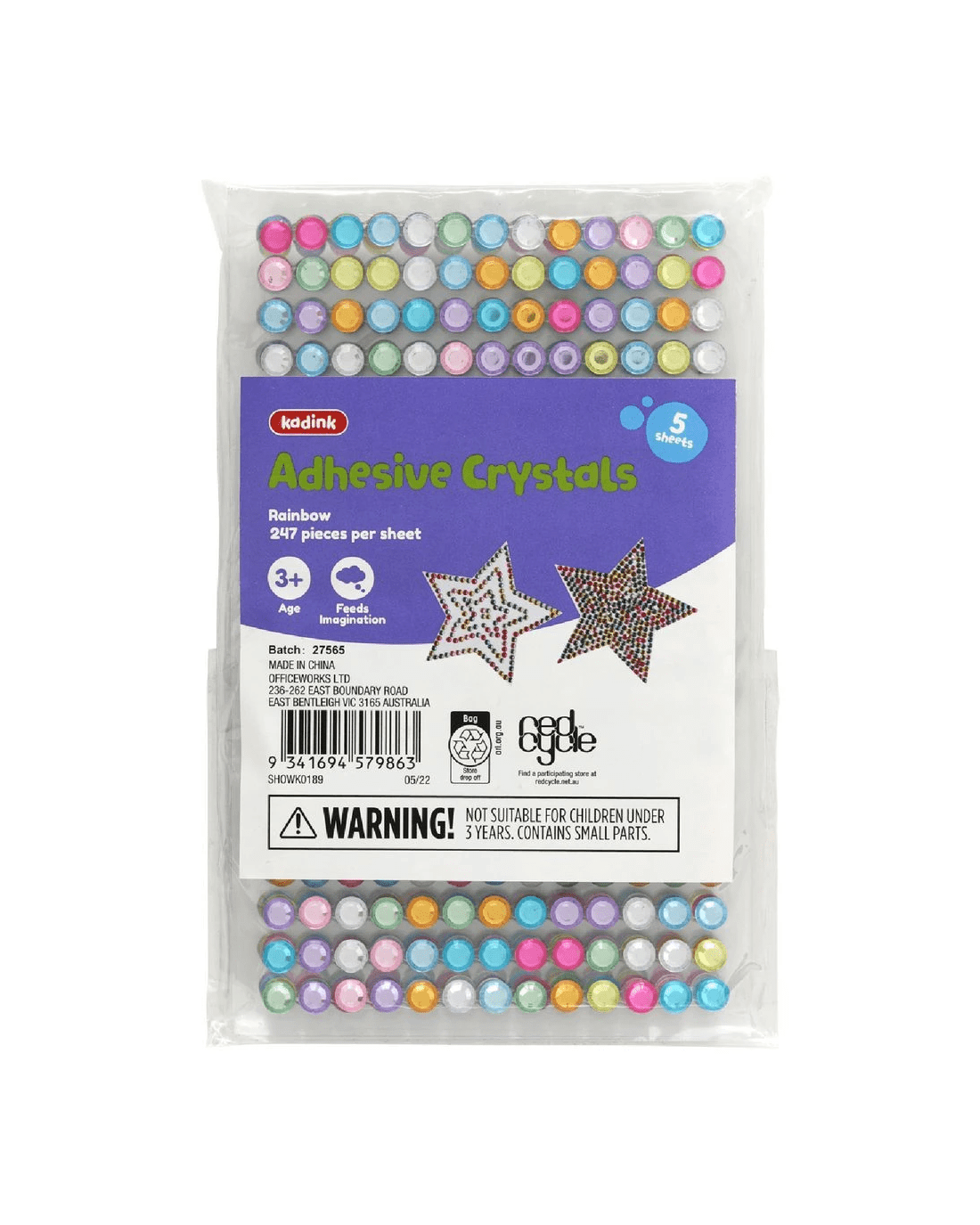 Sold by OfficeworksKadink Adhesive Crystals Rainbow 5 Sheets