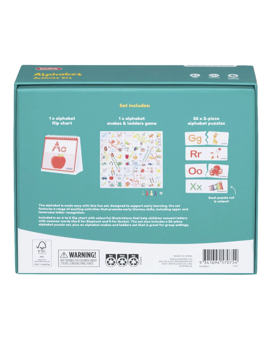 This Kadink Alphabet Activity Set is a great tool for learning about letters and the sounds they make. Included in this set is an alphabet flip chart, an alphabet snakes & ladders game and 26x 2-piece alphabet puzzles. It is a great set of activities for independent or group learning and is a fun way for learners to improve their literary skills as well as letter and word recognition.