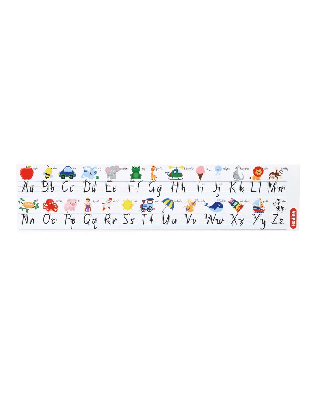 This Alphabet Desk Strip from Kadink has been designed to assist students with their handwriting skills in NSW and the ACT. The removable adhesive desk strip displays both upper and lower case formations of NSW handwriting and has been laminated for extra protection.
