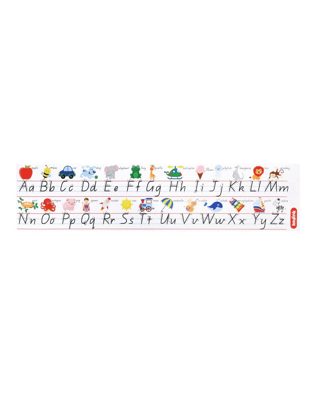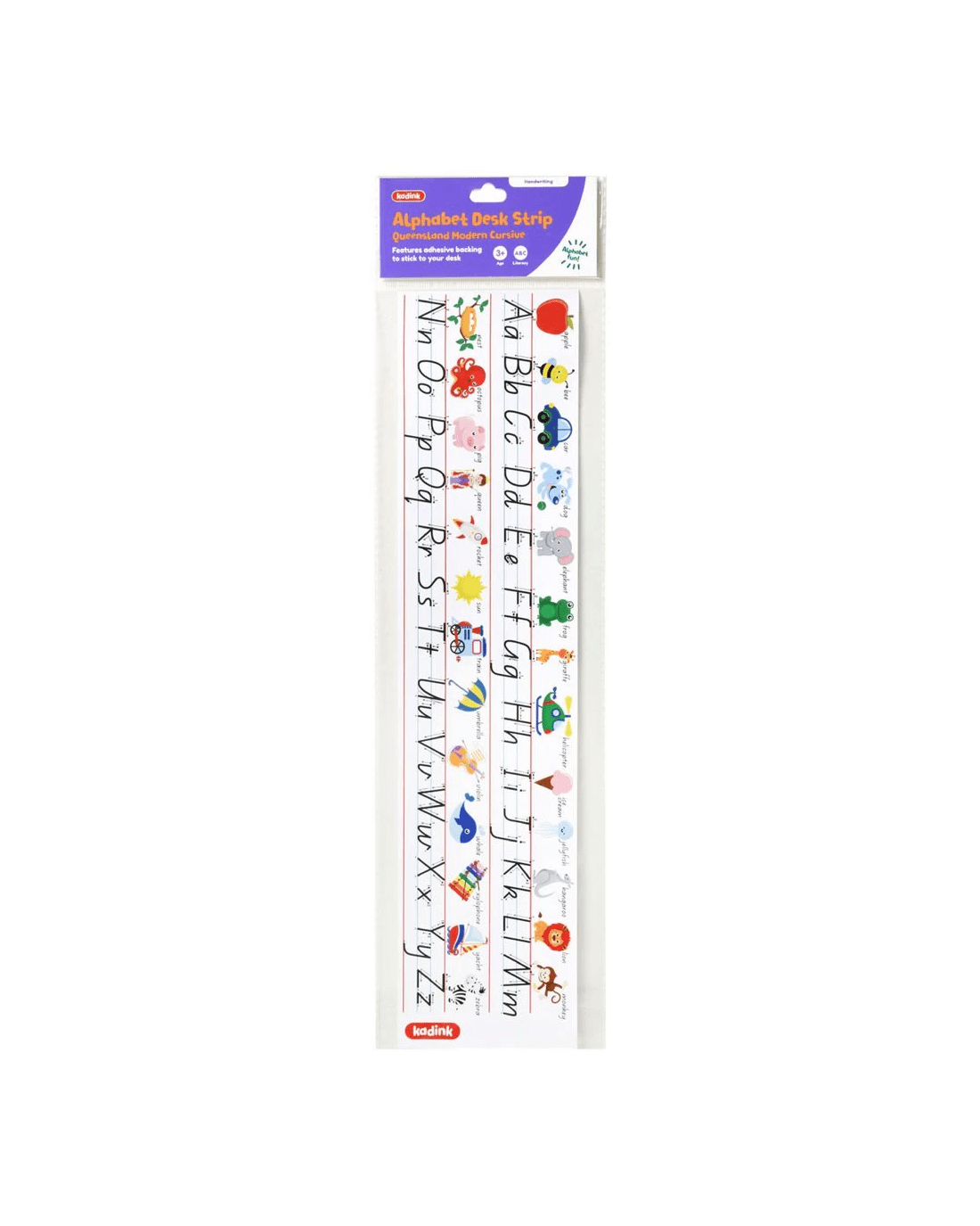 Keep a useful reference for learning letters and handwriting close by with this Kadink Alphabet Strip. This laminated desk strip measures 42 x 10 cm and displays both upper and lowercase formations of Modern Cursive Handwriting used in Queensland curriculum.