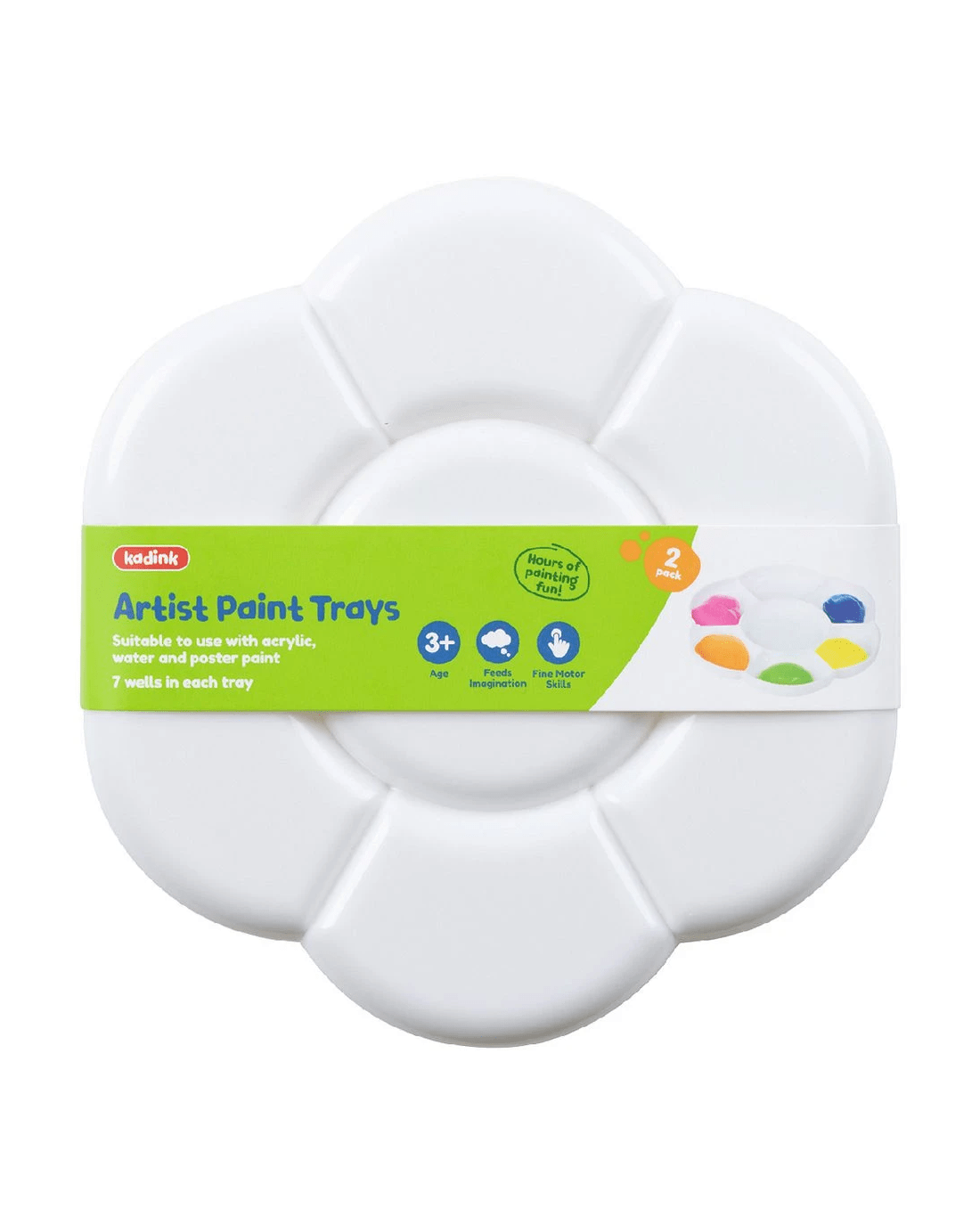 This Kadink Artist Paint Tray is a practical, simple solutions for separating your paint colours from one another when you're getting all artistic. With 6 large wells or paint and a round centre well you can fill with water for cleaning your brushes, this tray is perfect for painting beginners.