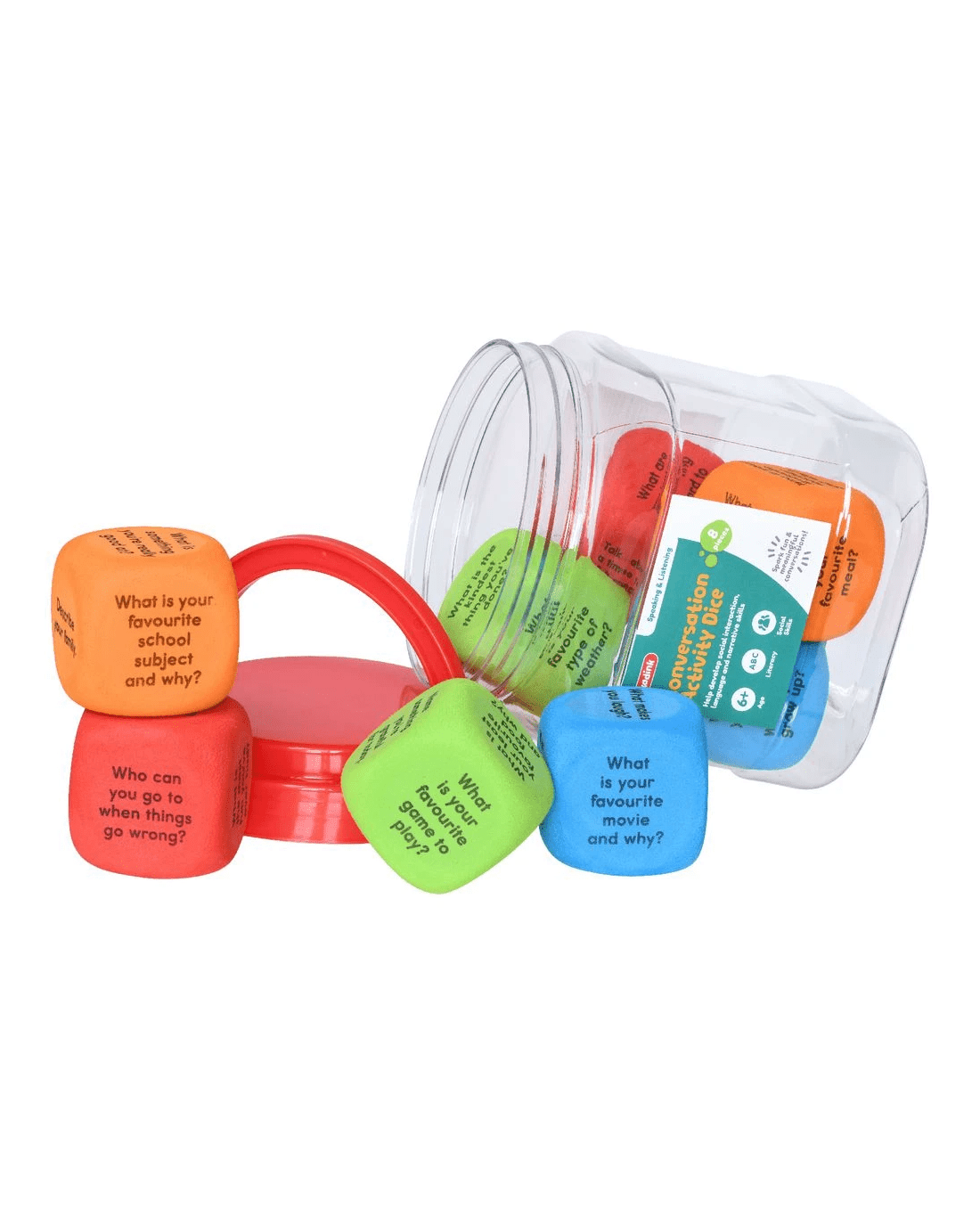 Sold by OfficeworksKadink Conversation Activity Dice Jar 8 Pieces