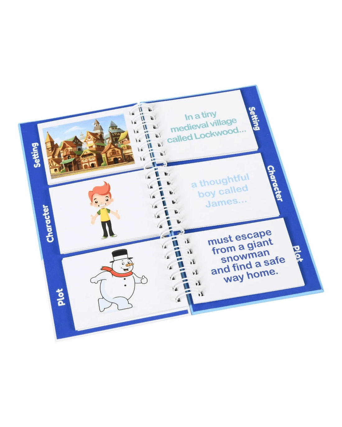 - It helps teach educate the different story building components including characters, settings and plot to help begin the writing process.