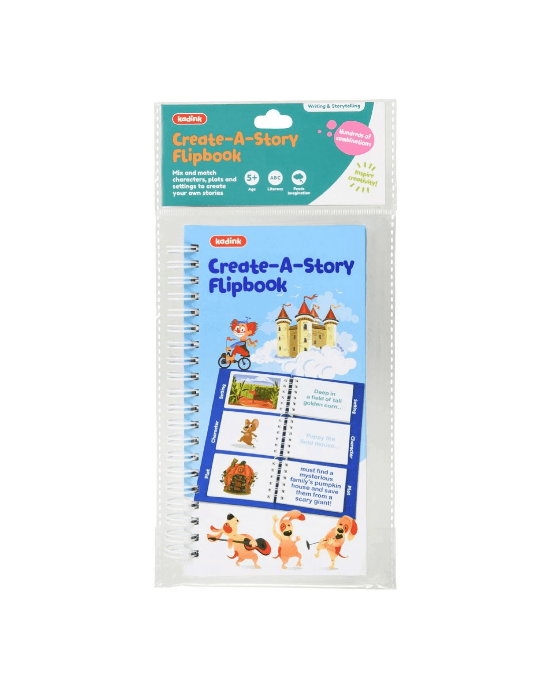 Mix and match different characters, plots and settings to help begin story writing with this Kadink Flip Book. Children will be guided on the components that go into story building, sparking their own creativity. Each flip is double-sided with a clear illustration to inspire the narrative and foster literacy and observation skills.