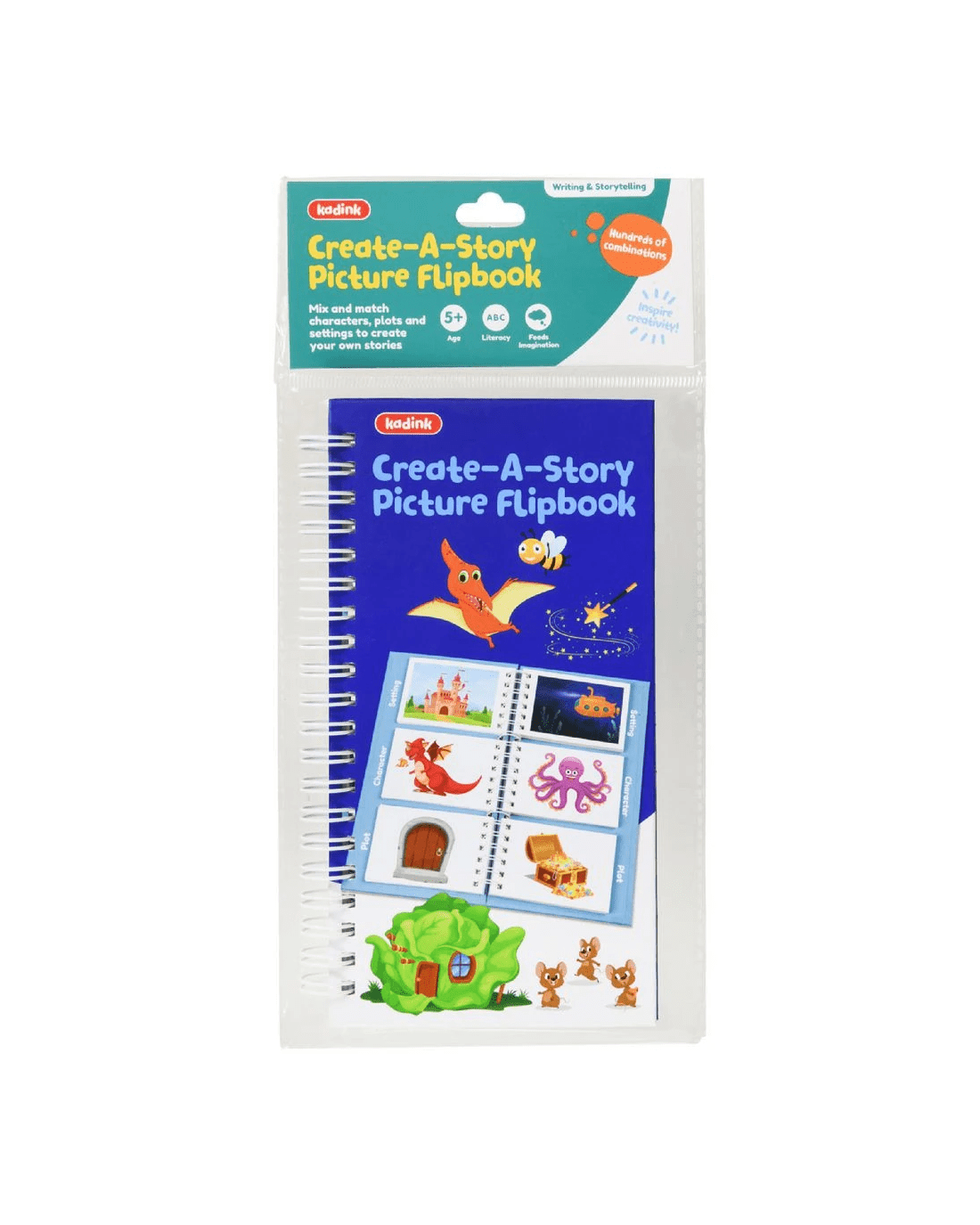 Mix and match different characters, plots and settings to help begin story writing with this Kadink Flip Book. Children will be guided on the components that go into story building, sparking their own creativity. Each flip is double-sided with a clear illustration to inspire the narrative and foster literacy and observation skills.