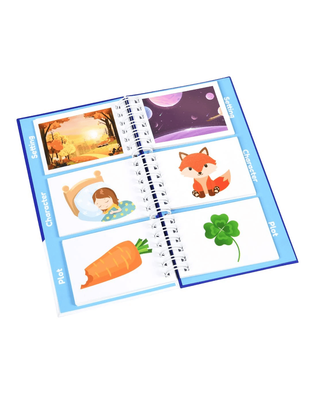 - It helps teach educate the different story building components including characters, settings and plot to help begin the writing process.