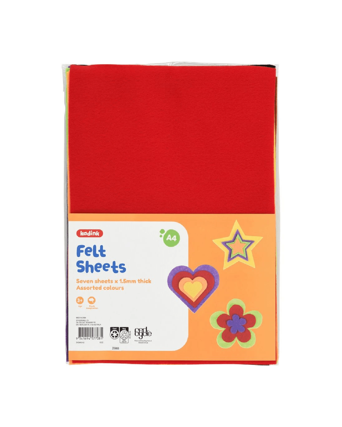 These Kadink Felt Sheets are ideal for a variety pf craft, art, and collage activities. Each sheet is A4-sized and can be cut down if needed.