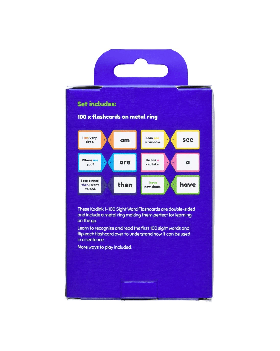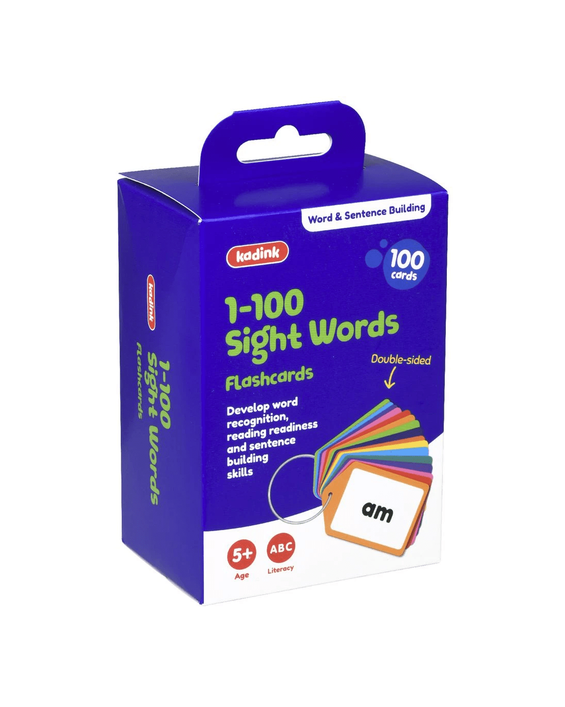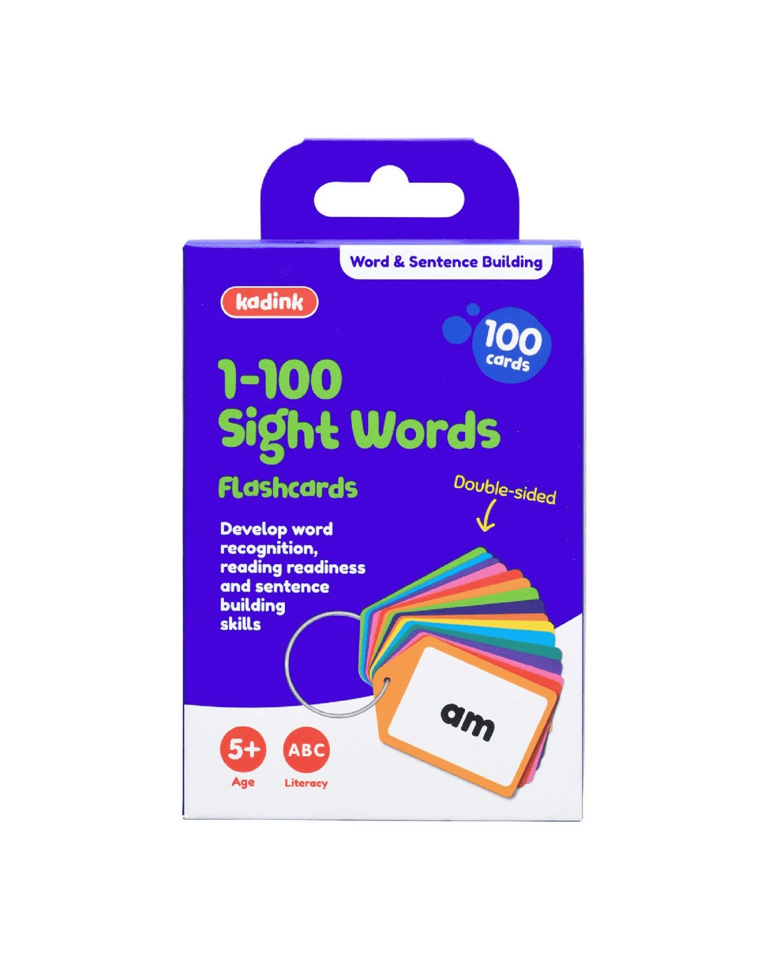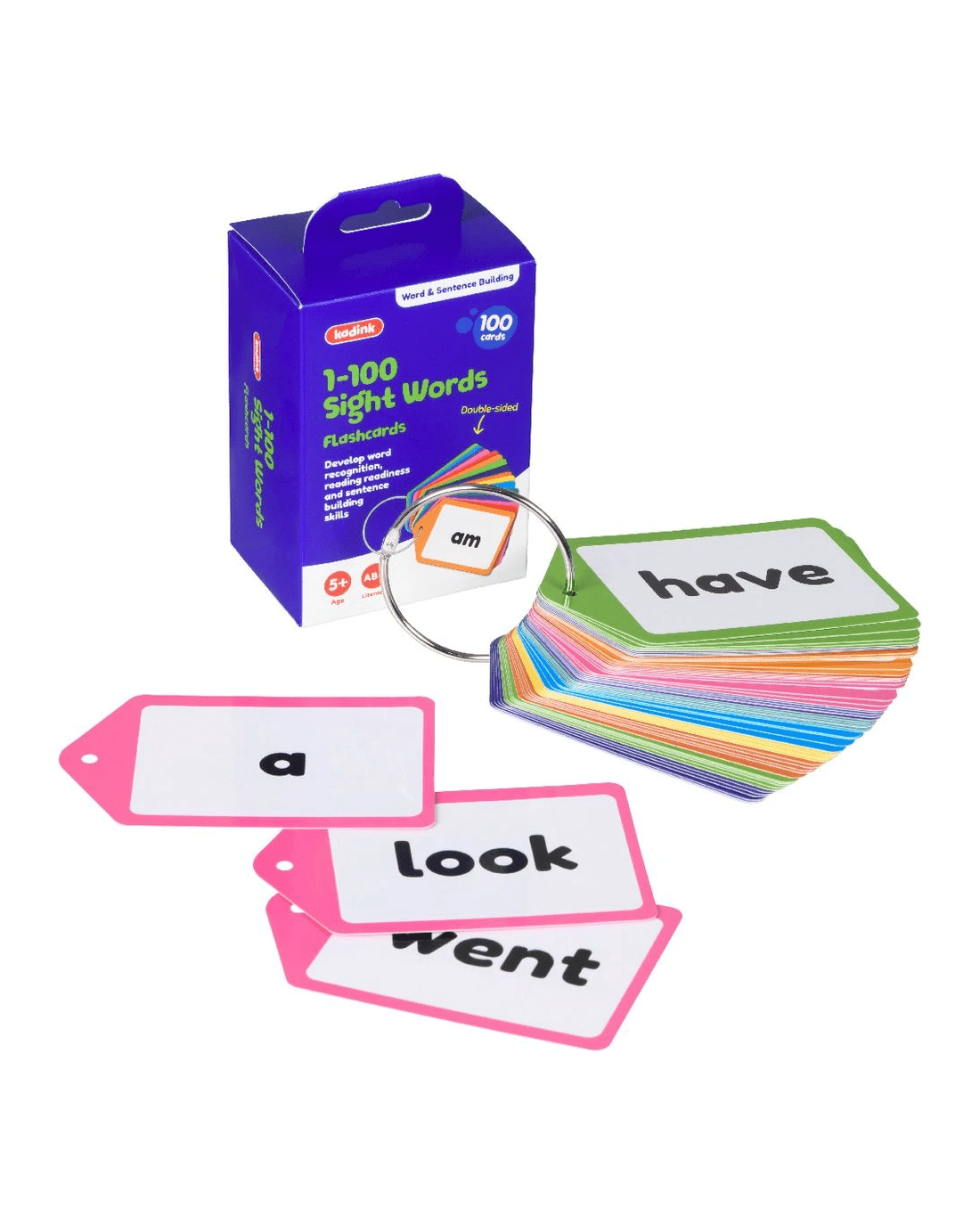 This set of Kadink Flashcards 1-100 Sight Words is perfect for improving literacy skills and broadening your vocabulary. It comes with 100 flashcards, all attached to a metal ring so none will disappear.