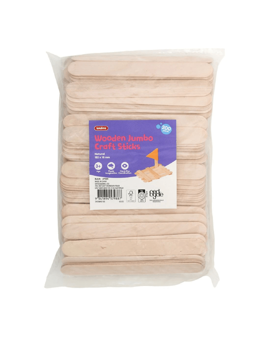Sold by OfficeworksKadink Jumbo Natural Craft Sticks 200 Pack