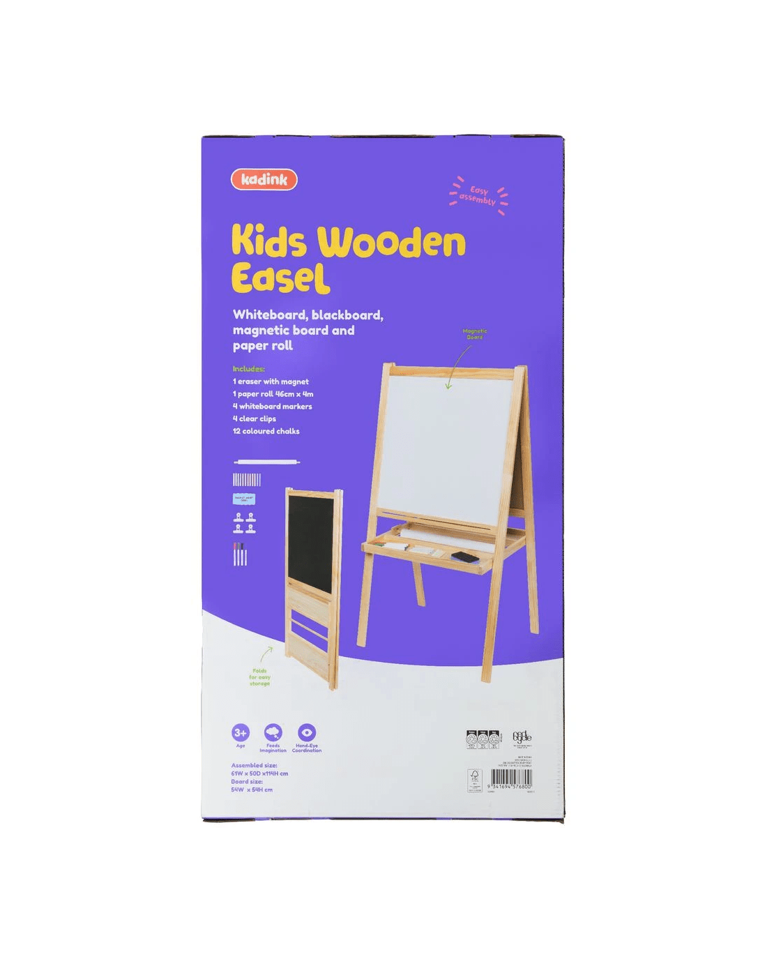 • When assembled, the easel measures 61 x 50 x 116 cm.
