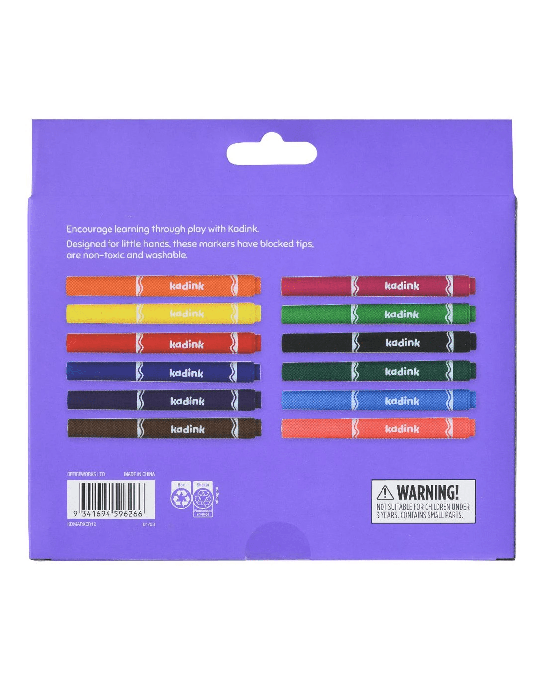 Sold by OfficeworksKadink Large Washable Colour Markers 12 Pack