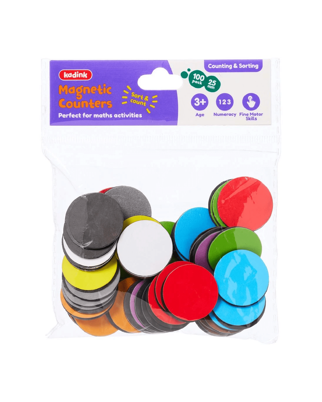 These Kadink Counters are an ideal way to help learners develop colour, shape and pattern recognition. There are 100 multicoloured counters in this pack.