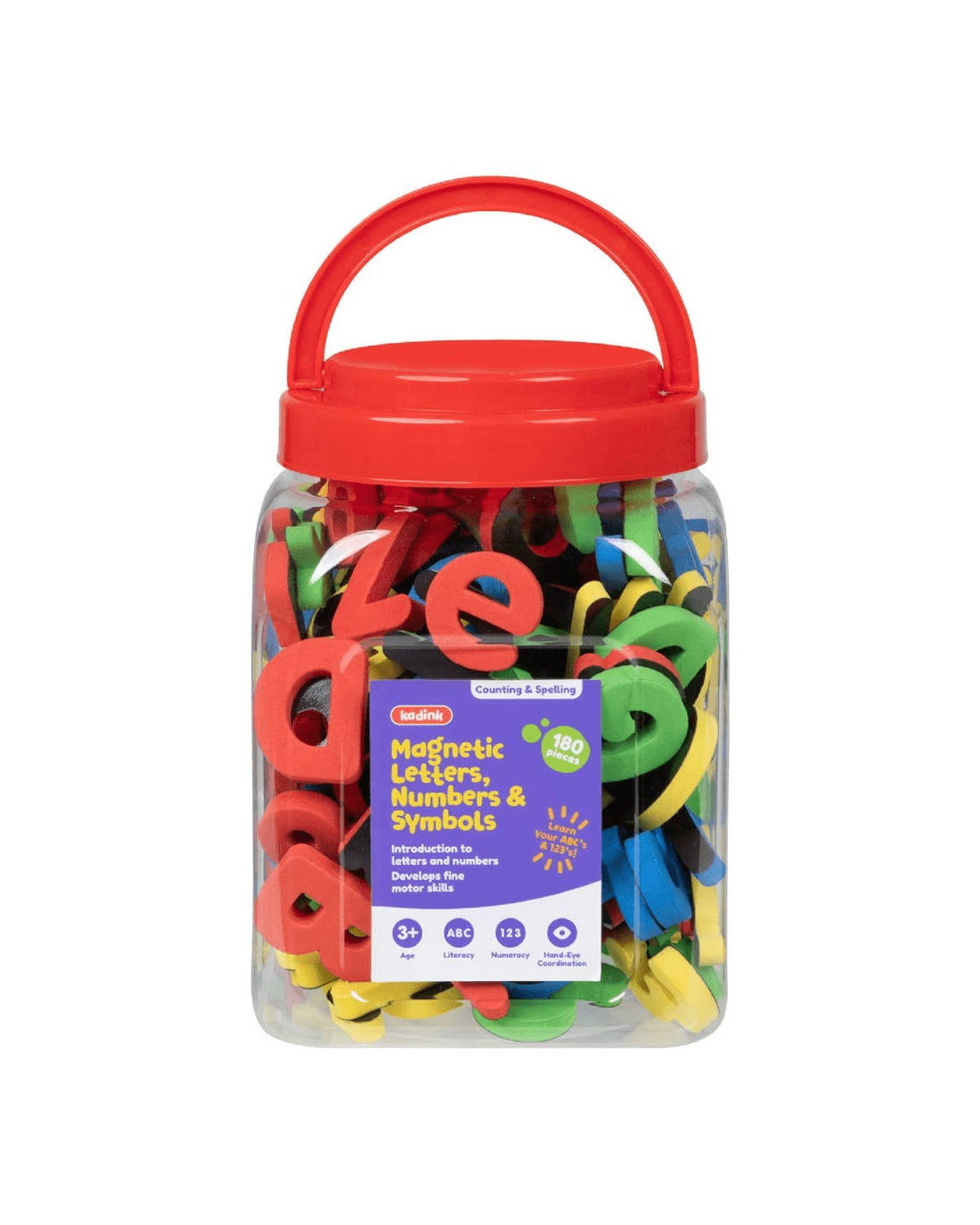 These Kadink Magnetic Letters, Numbers & Symbols are a great introduction tools for learners and help to develop fine motor skills. With a total of 180 pieces, this set is an ideal way to practice both counting and spelling. There are several ways you can use this set, and the reusable storage jar makes tidying up quick and easy.