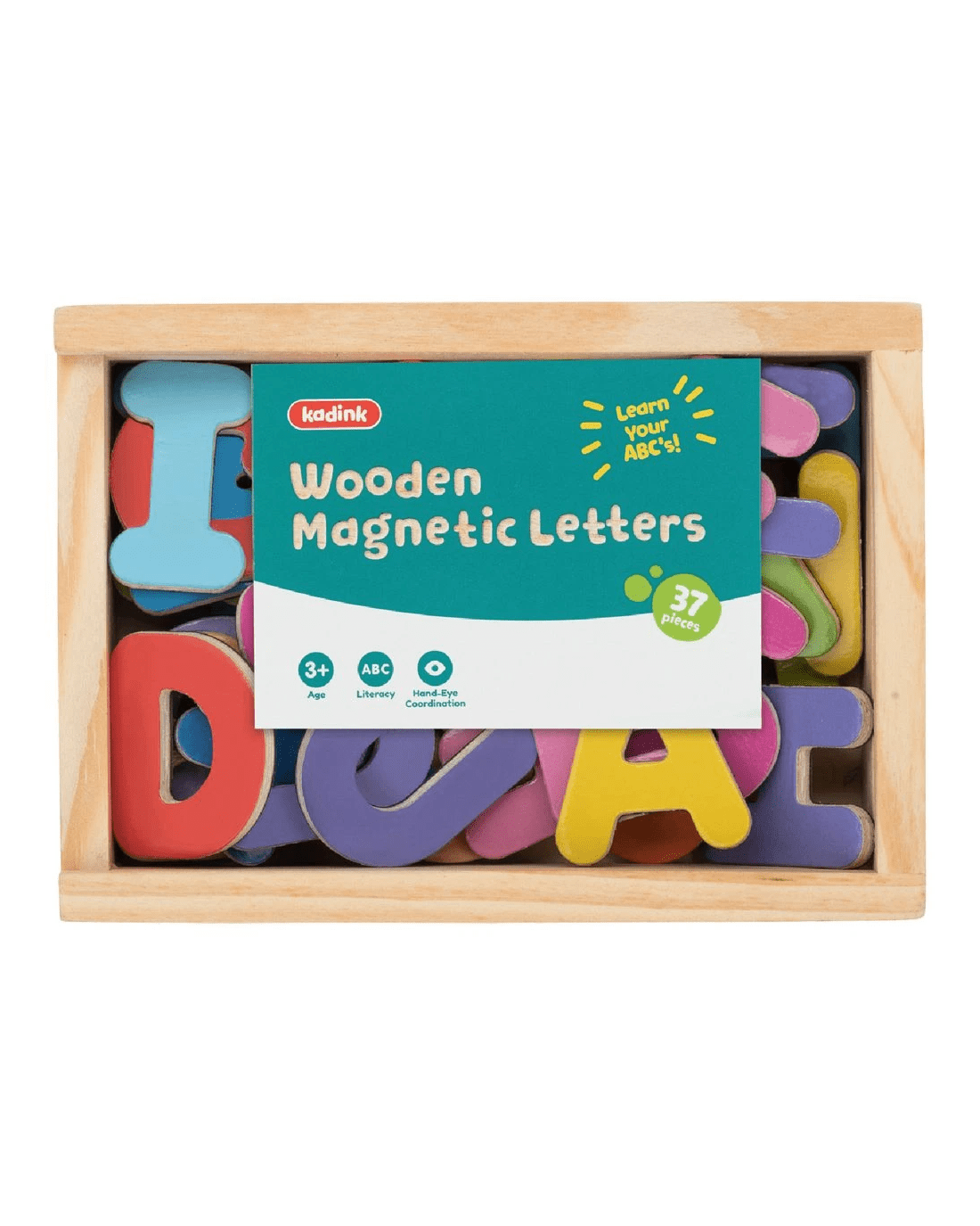 These Kadink Letters have a wooden construction with a magnetic backing so you can use them on your fridge and other magnetic surfaces. They help to develop essential skills in literacy, vocabulary, and spelling. The letters come in a protective case that provides an easy storage solution.
