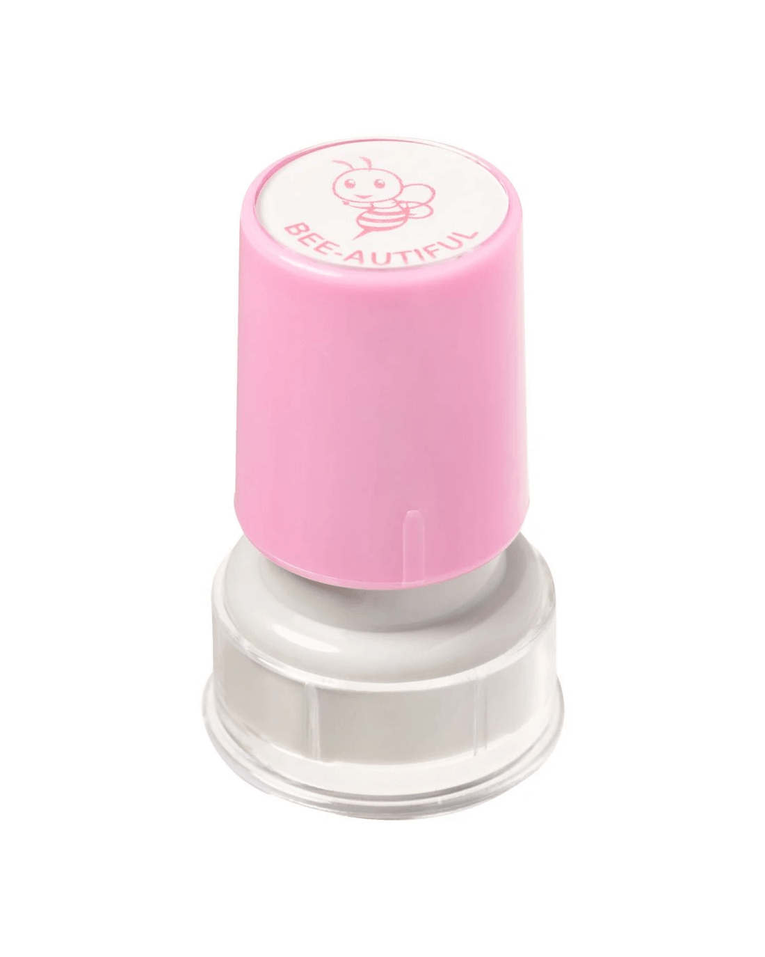 - The ink is pink coloured and produces a 'Bee-autiful' imprint.