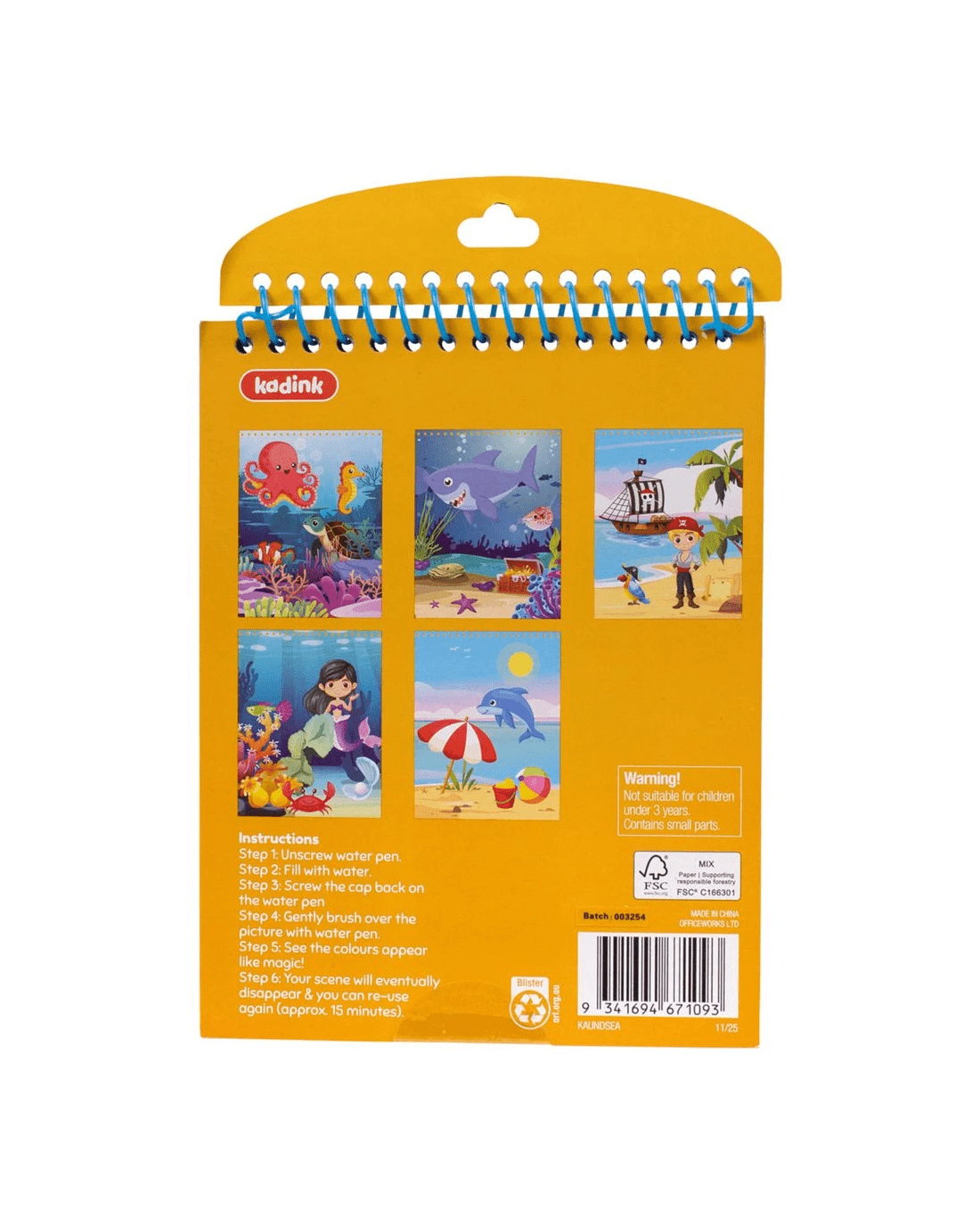 This Kadink Mess Free Water Magic Book contains five adorable underwater scenes to colour with water. It provides young artists a mess-free colouring experience.