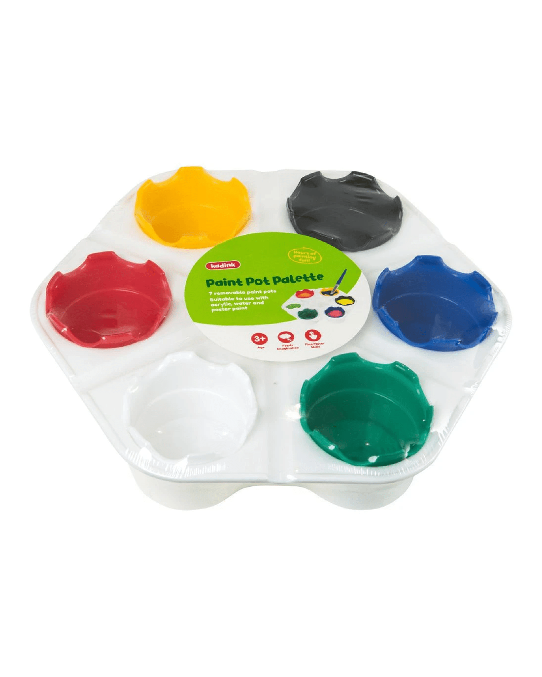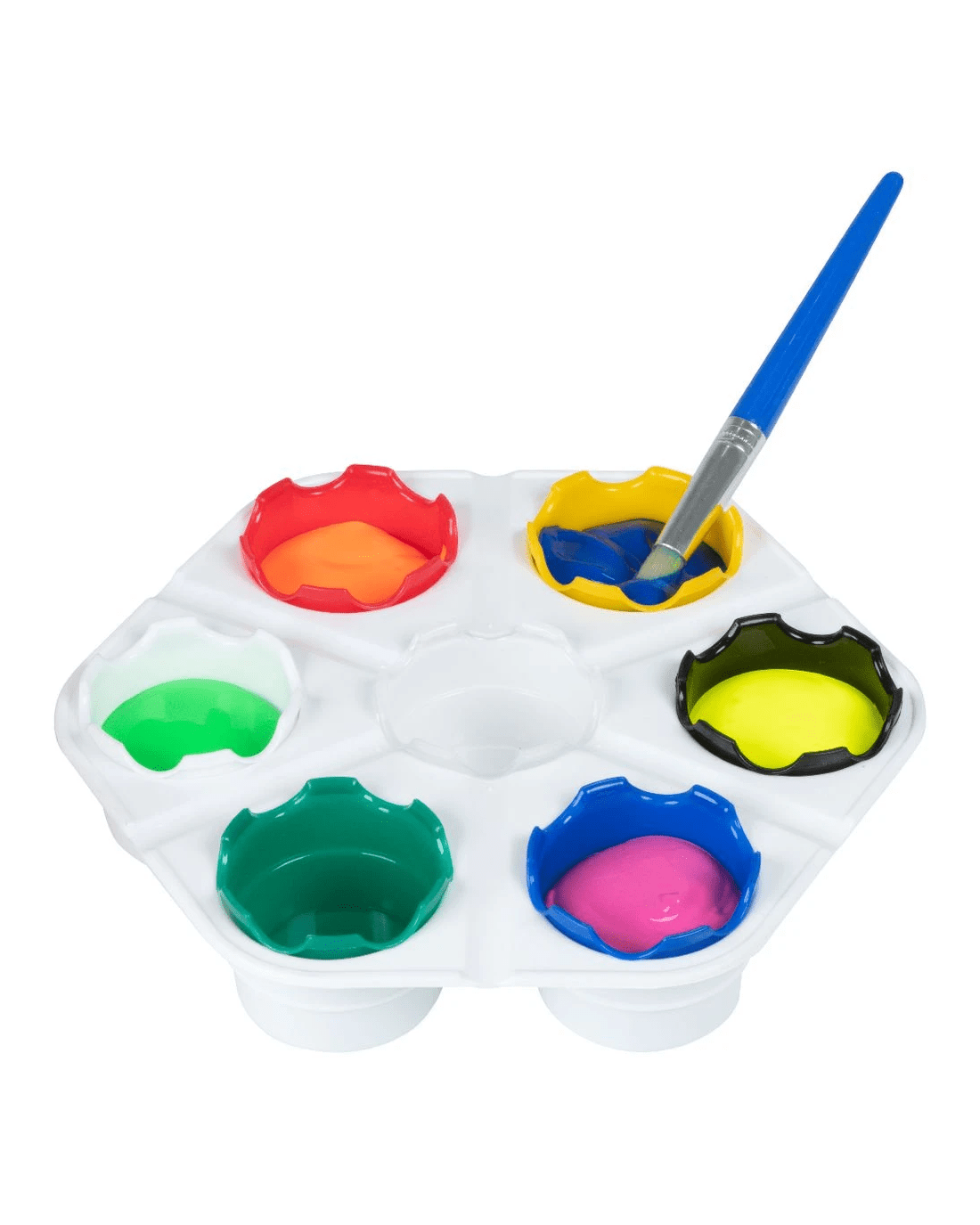 This Kadink Paint Pot Wheel Palette is a great little storage container for keeping your paints clean and separated. Each well holds one colour paint pot, which can be removed for cleaning. Because the pots do not have a lid you can dip your paintbrush into each pot without having to open and close them every time they are used.