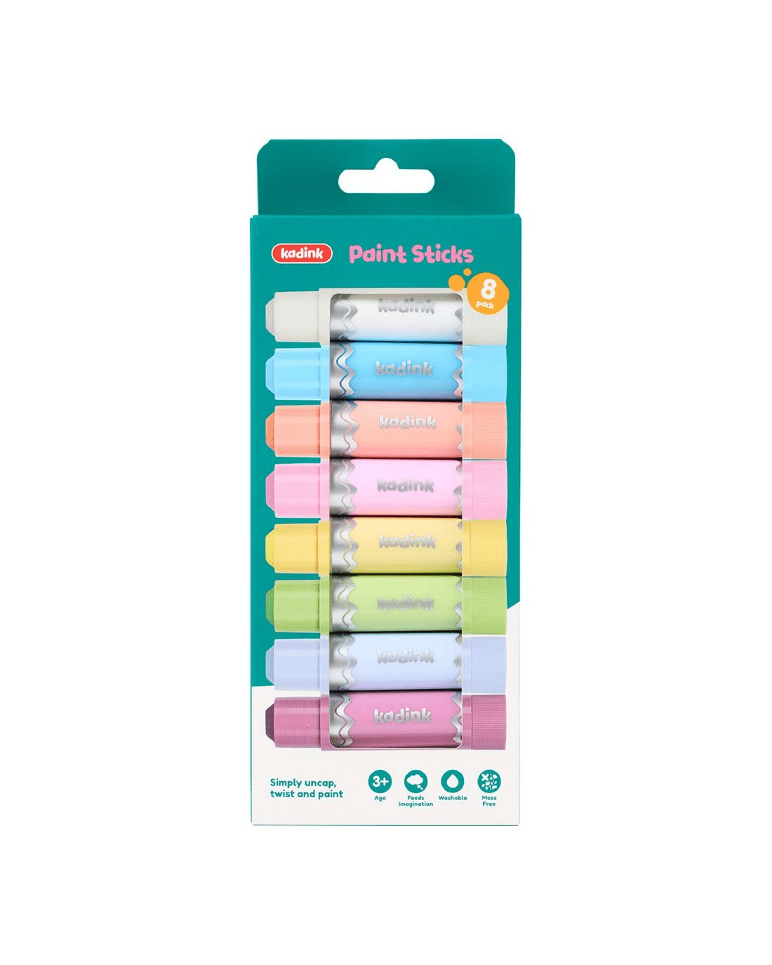 This pack of 8 Paint Sticks from Kadink is perfect for encouraging creativity, critical thinking, drawing, hand-eye coordination, and fine motor skills. Plus, the pastel colours will have you creating eye-catching artwork that stands out on paper.