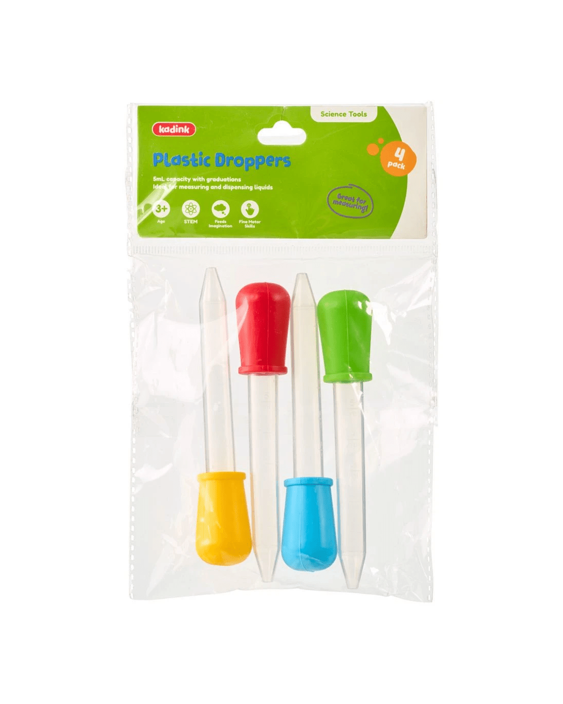 These Kadink Plastic Droppers are perfect for measuring and dispersing liquids for science or art. They show gradations so you can practice dropping different volumes to learn measurements or create precise mixtures.