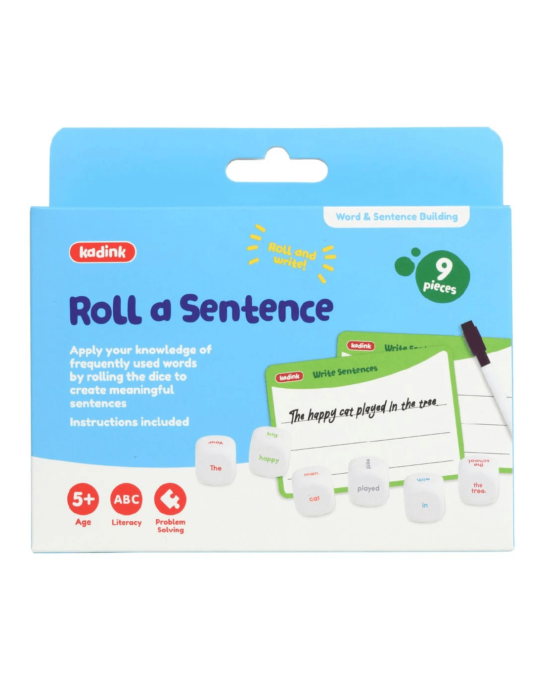 This Kadink Roll a Sentence Set is a fun way to practice English literacy skills in the classroom or at home. You can apply your knowledge of frequently used words by rolling the dice to create meaningful sentences. This pack of 6 dice comes with 2 x A6-size write and wipe cards and a dry-erase marker so you can write down the sentences you make, then easily clean up and start over.