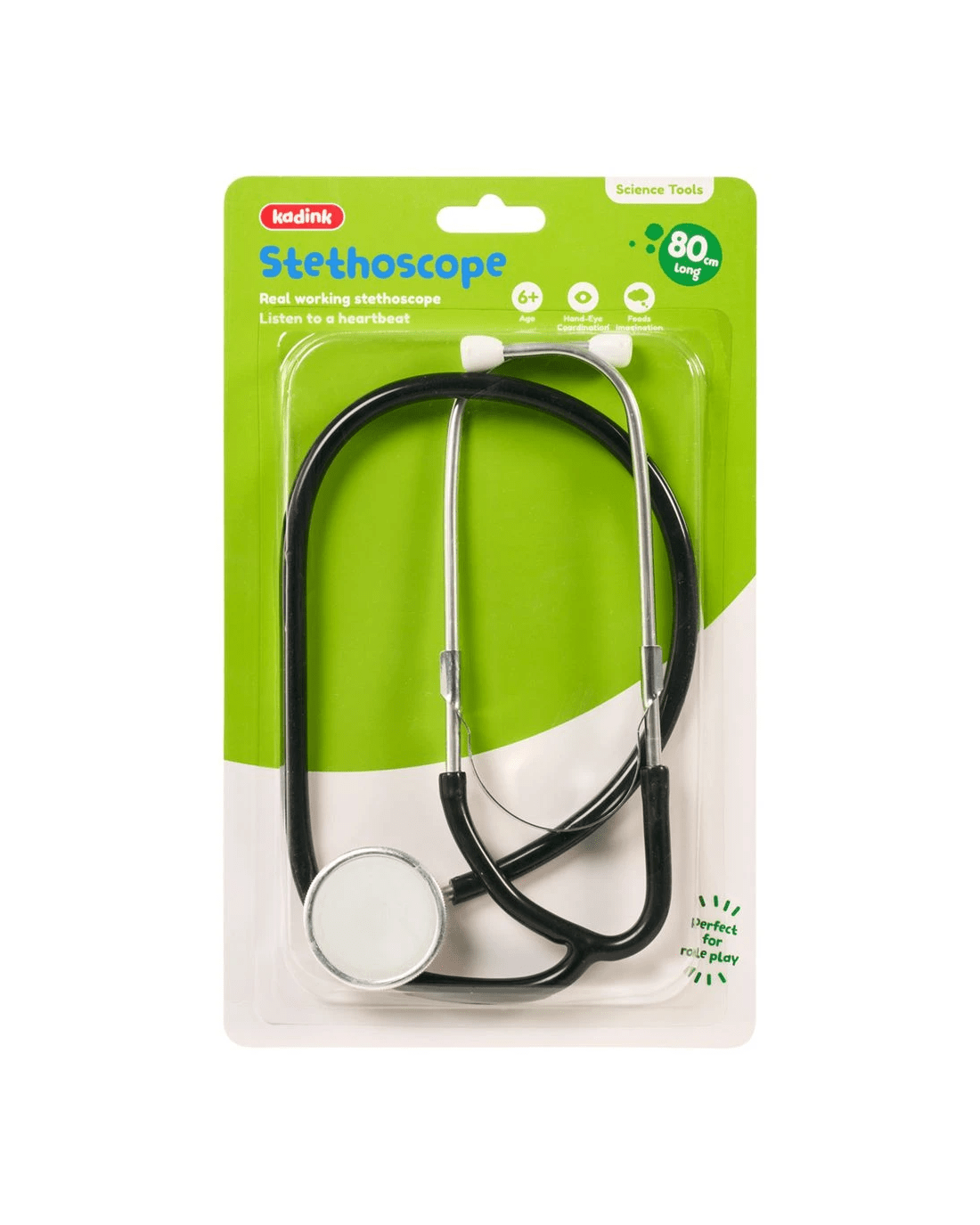This Kadink Stethoscope really works, so you can listen to a heartbeat while roleplaying as a doctor. It's a great prop for all kinds of fun science play, or for learning about medicine and the human body.