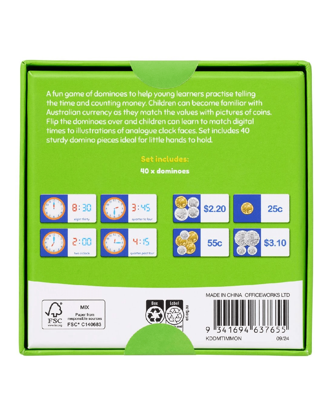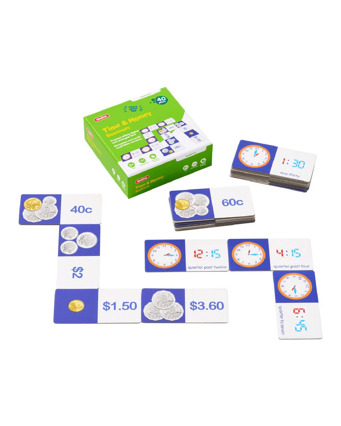 - There are 40 dominoes in this pack, with time-telling on one side and currency on the other.