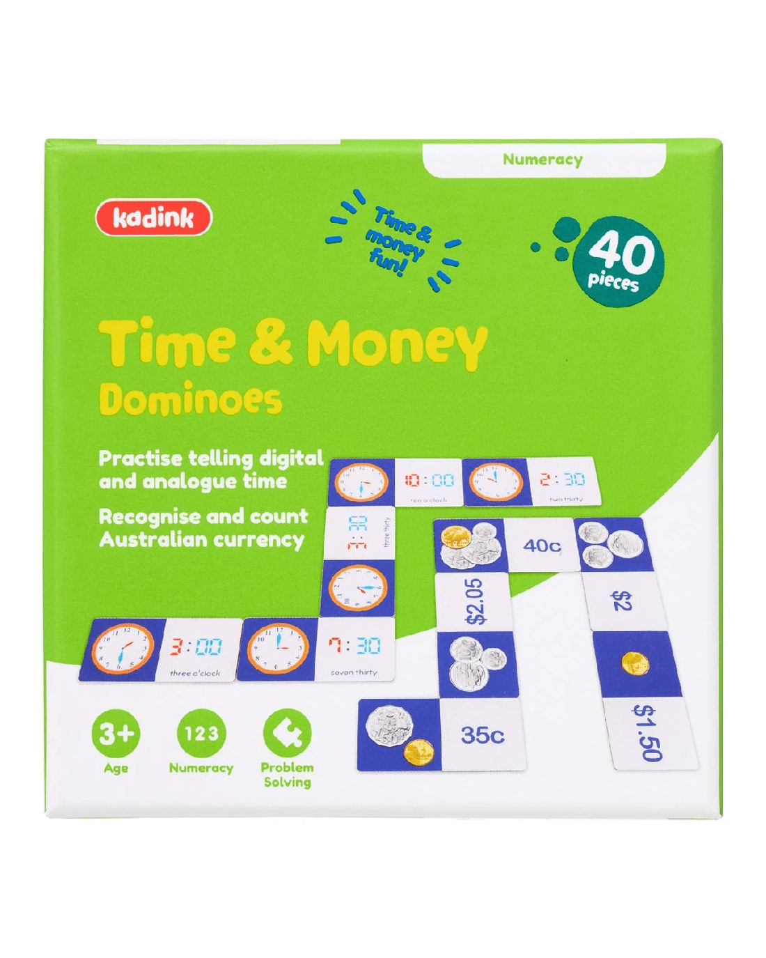 These Kadink Time and Money Dominoes are a great way to have fun while learning about time and money. Practice telling analogue and digital time on one side of each domino and add up the value of Australian coins on the other.