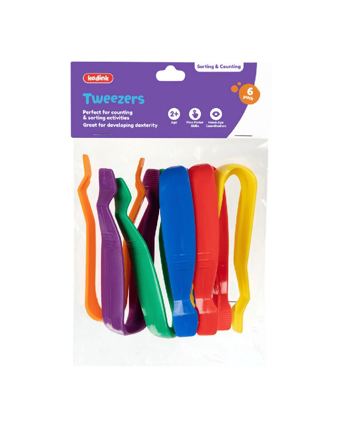 These Kadink Tweezers have been designed especially for learners to develop hand-eye coordination. Bright and durable, these tweezers can be used to pick up counters, beads or other manipulatives, advancing the user's fine motor skills. Ideal for sorting and counting activities they have a wide grip end for easy use.