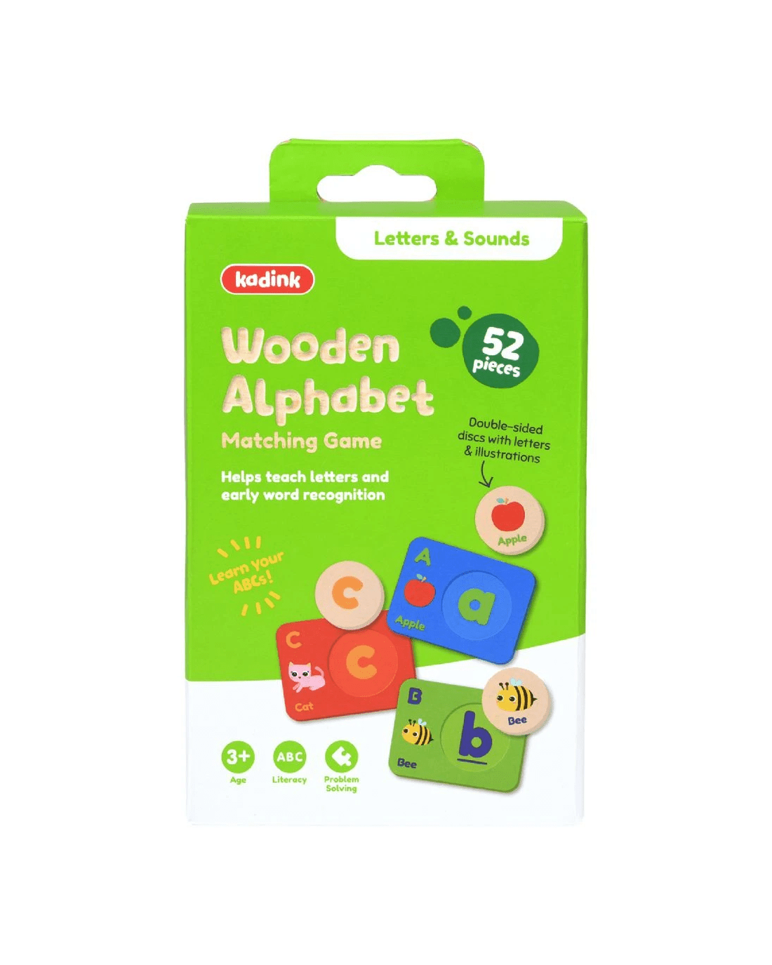 This Kadink Wooden Alphabet Matching Game comes with wooden discs and cards. It aims to improve literacy skills, as well as working on fine motor skills and hand-eye coordination. Ages 3 and over will love learning through this engaging activity.