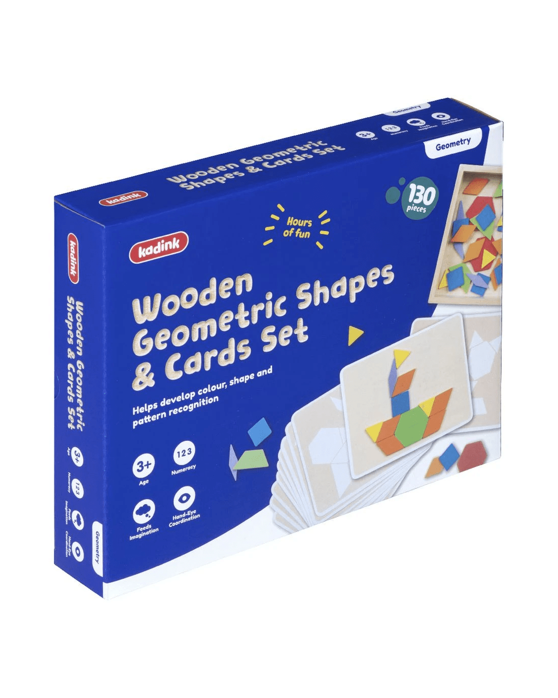 This Kadink Wooden Geometric Shapes and Cards Set assists in the development of basic geometry skills whilst improving hand-eye coordination. It is targeted at learners aged 3 and above.