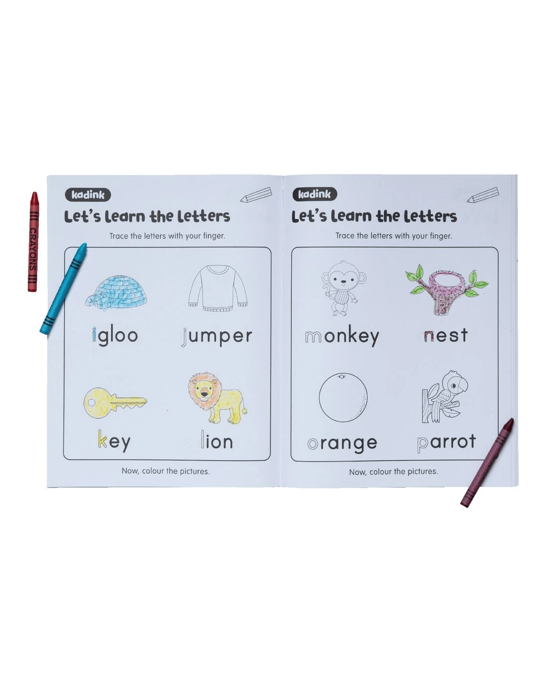 This Kadink Workbook helps you to develop an understanding of linked letters and sounds, letter shapes, initial consonants, and more. It's an engaging and stimulating activity book that has a playful vibe to make it enjoyable and encouraging for learners. It also includes tracing activities that aim to improve pencil control, preparing you for school.