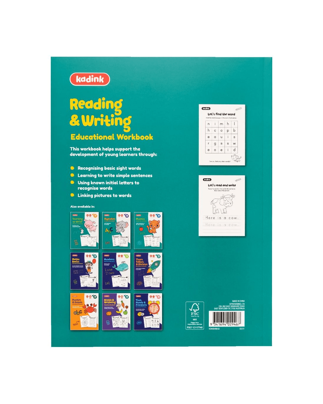 Sold by OfficeworksKadink Workbook 48 Pages Reading and Writing