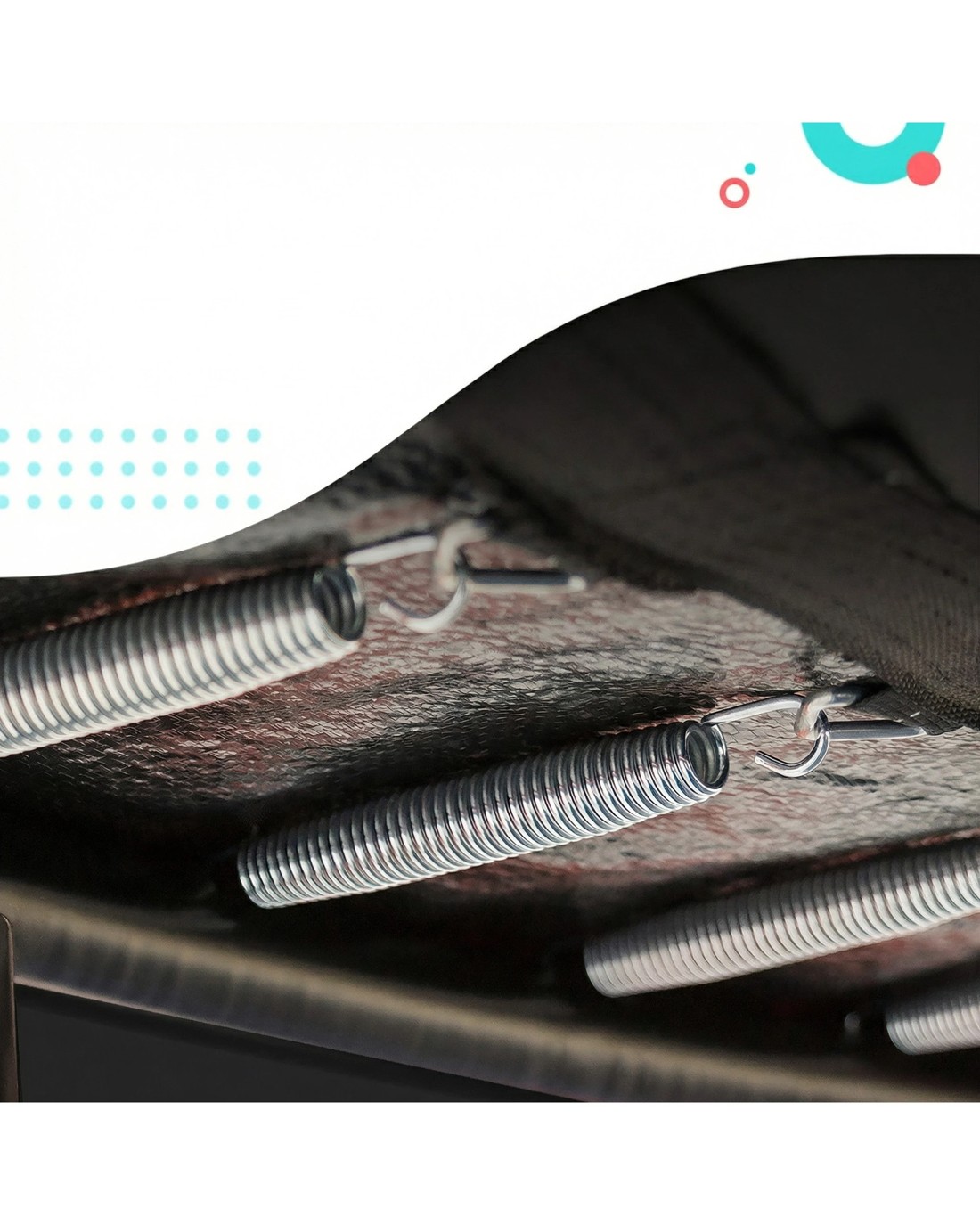 This trampoline uses linked legs for superior stability and structure of the legs also minimises the tendency for legs to dig into the ground. Legs also feature re-enforced joint bars to enhance strength and stability.
