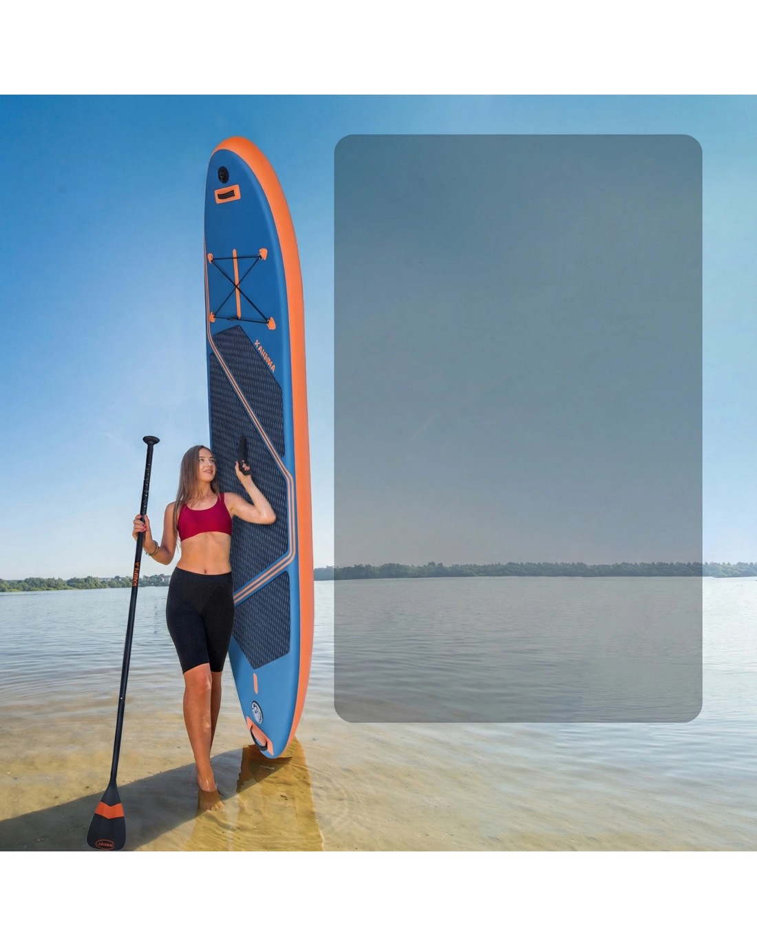 The Kai 10.6ft iSUP features an ultra-light drop-stitch core with a reinforced, multi-layer PVC exterior. It has a soft, non-slip EVA deck to help with balance and grip, ideal for yoga, paddle boarding and more. With its high-quality construction, this board is ready for fun water adventures.