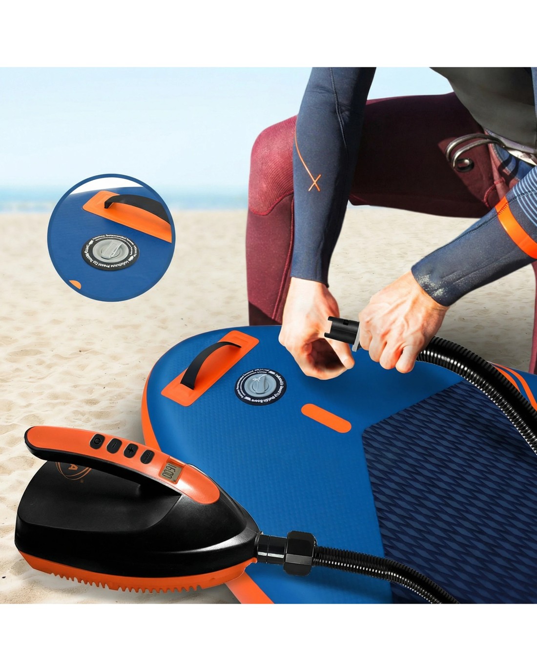 Optional Electric PumpUpgrade your iSUP kit with our high-end portable electric air pump to inflate your paddle board in minutes. With six interchangeable nozzles and a 16 PSI max pressure, this air pump will get you ready for paddle boarding in no time!