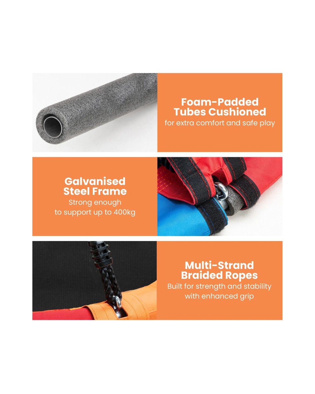 Get ready for endless swinging fun with Kahunas tree swing set! It features a sturdy galvanised pipe frame, comfy padded foam tubes and fun extras like colourful flags. With extension straps, carabiners, and mountaineering buckles included, setting it up is super easy, just hang it up and let the good times roll. It is perfect for kids who love to swing, sway and enjoy the great outdoors!