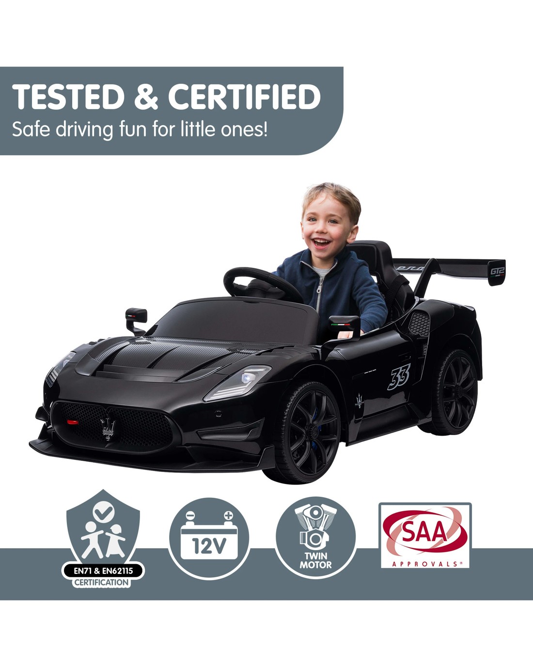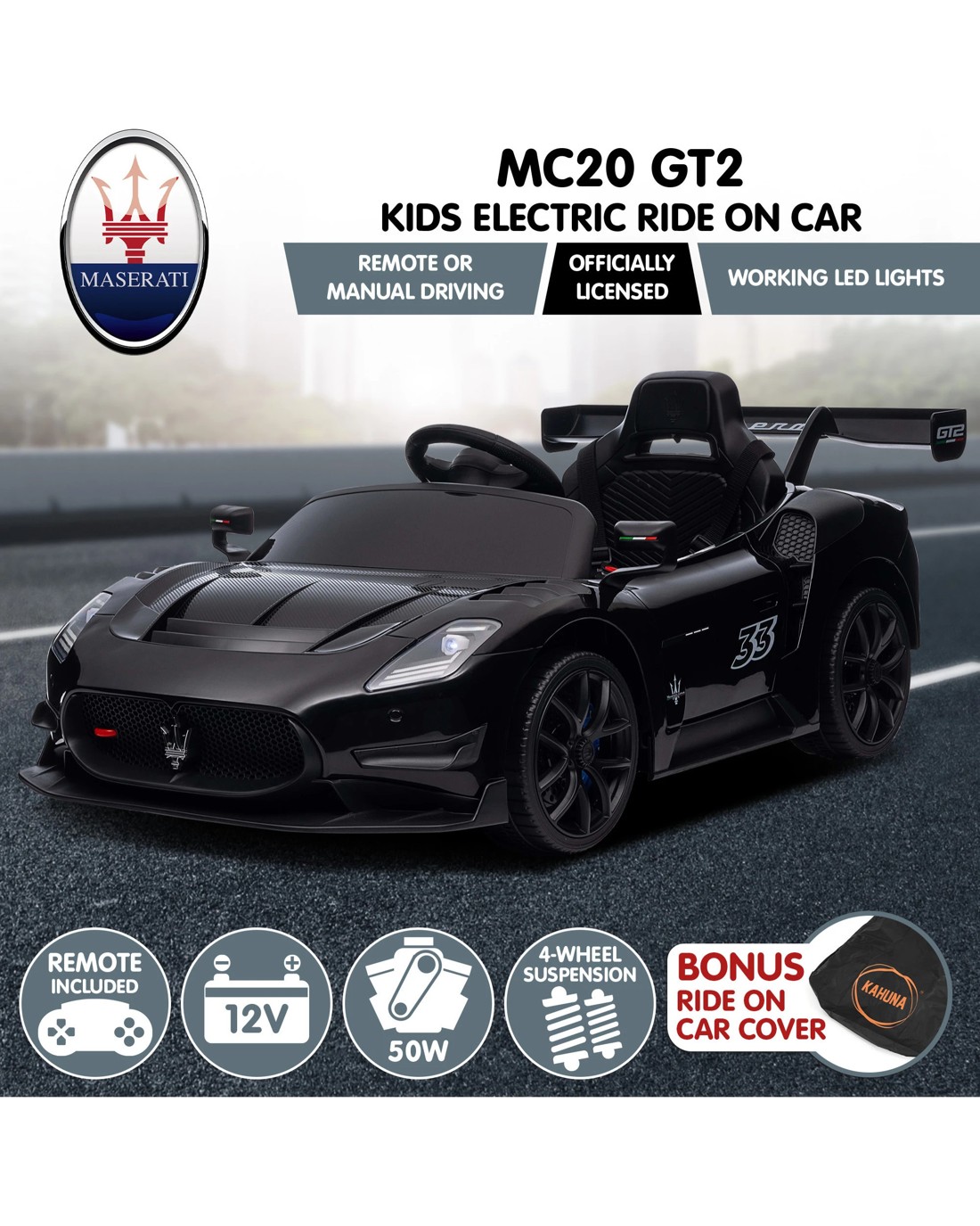 Kahuna Maserati MC20 GT2 Licensed Electric Kids Ride On Race Car Black