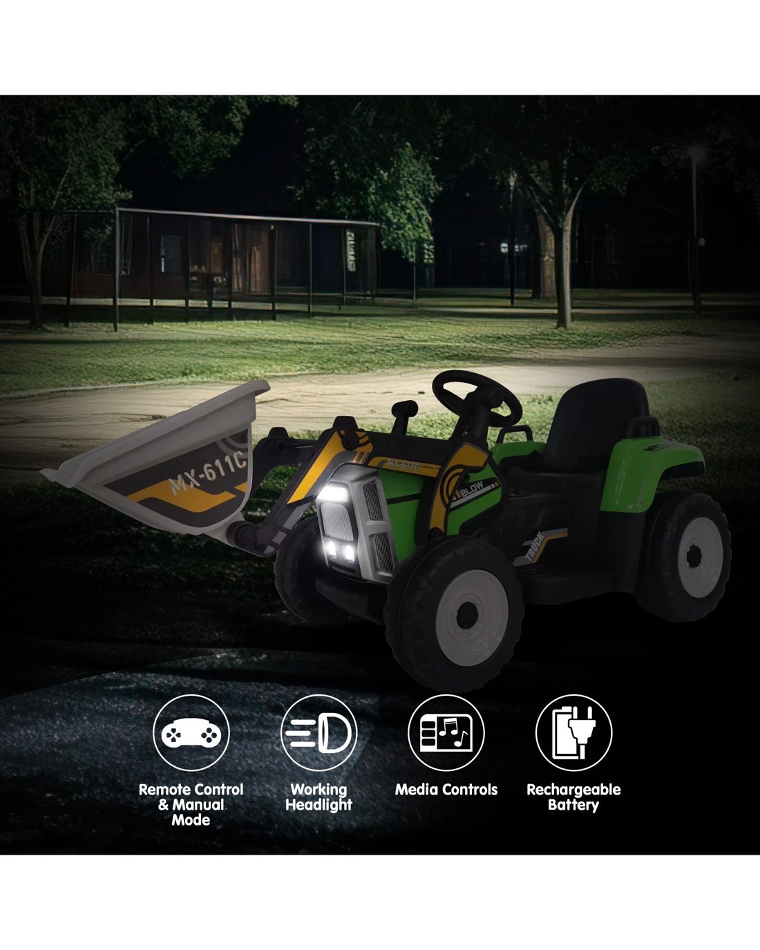 The realistic dashboard has Bluetooth, a USB port, music, stories and volume control, so the entertainment never stops as your little builder rides. Plus, there are seven LED headlights to light up the night for some after-dark play. This loader is perfect for young builders who want a mix of excitement and imagination, bringing their construction dreams to life!