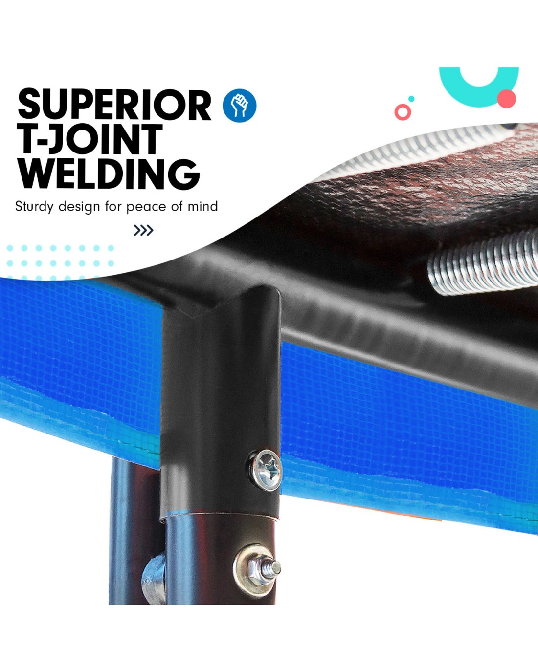 Genuine Reversible padding: This trampoline comes standard with reversible padding. Yes, this is a true reversible safety pad, not just a pit of blue sewn underneath. The quality of this padding is the best you will find in Australia! The padding cover is UV stabilised and has embedded nylon mesh, ensuring the padding will last under the harsh Australian sun.