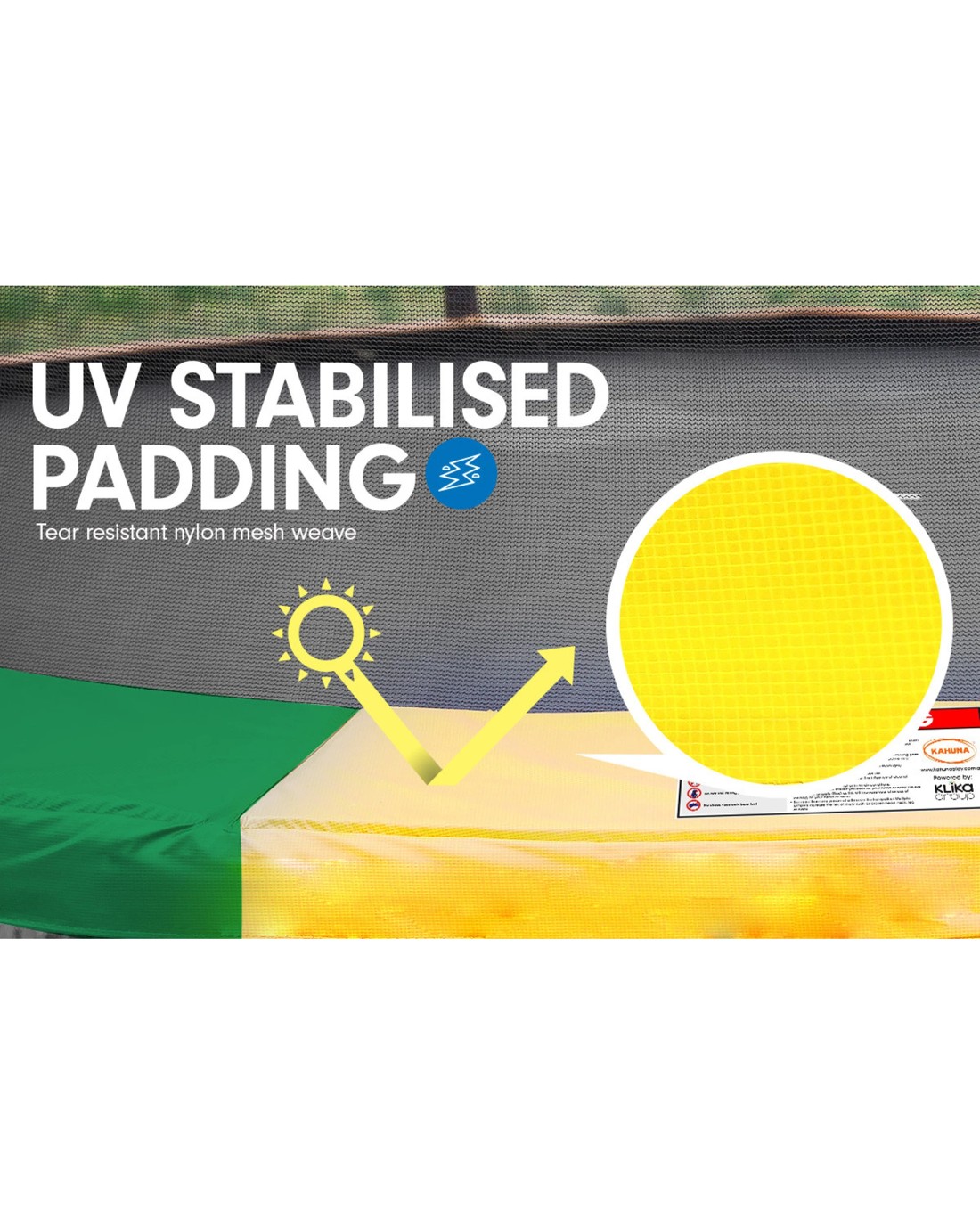 The padding cover of the trampoline is UV stabilised and has embedded nylon mesh, ensuring the padding will last for years under the harsh Australian sun.
