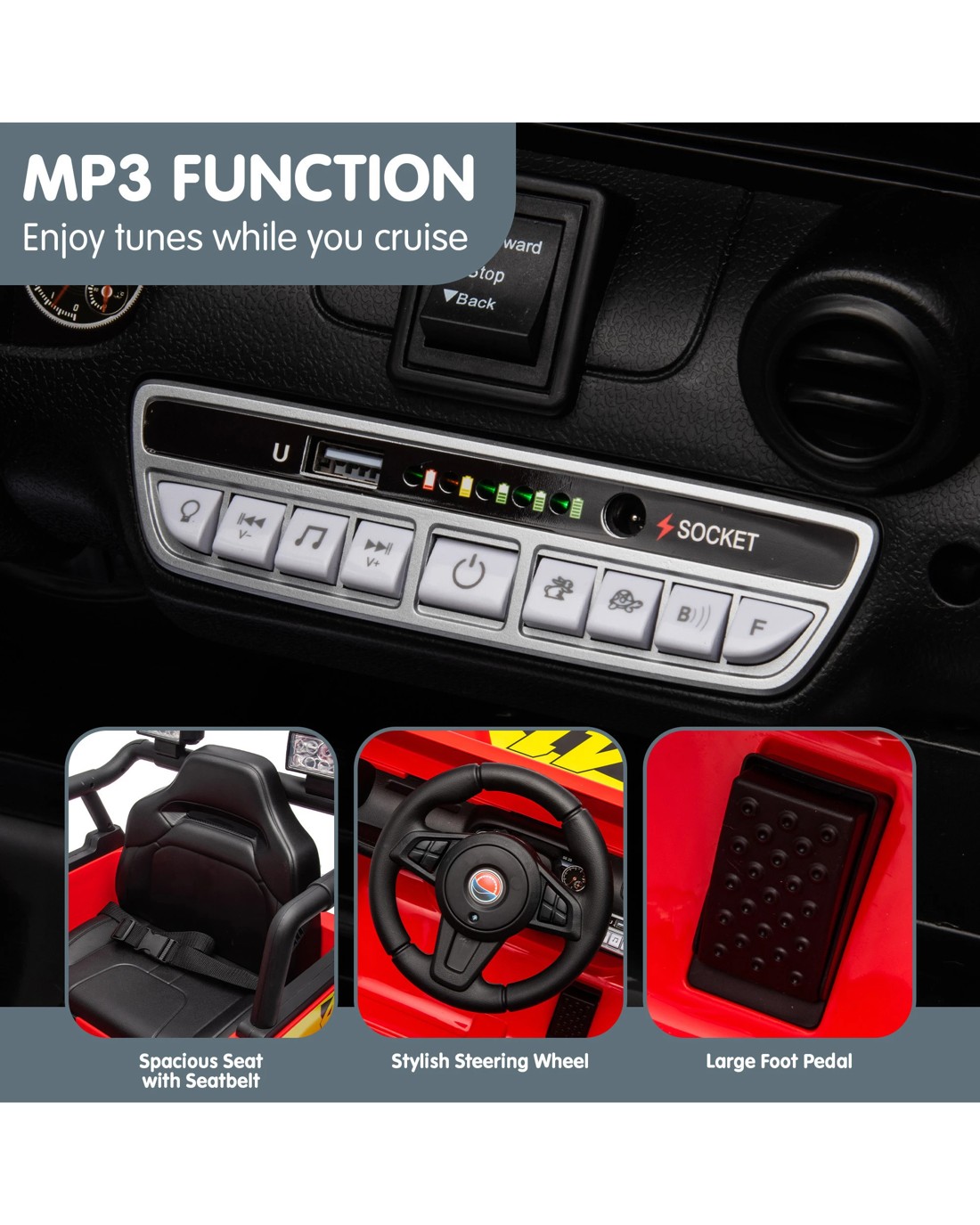 Embark on an adventure with the Kahuna S619 Gravity Ride On Car! This compact ride on is loaded with features including LED front lights, two colour-changing spotlights, a working horn and an upgraded dashboard capable of music and Bluetooth, delivering an authentic driving experience for your little speedster.