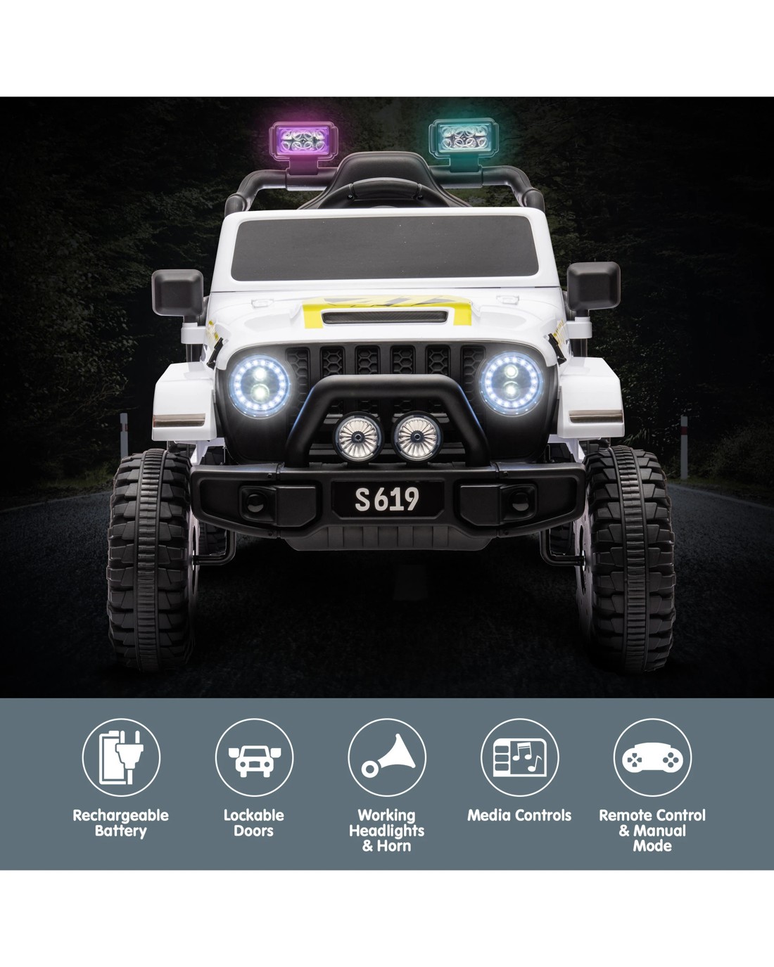 - Working horn and LED headlights