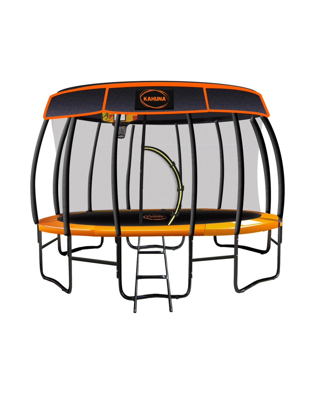 Kahuna Trampoline 12 ft with Basketball Set and Roof - Orange