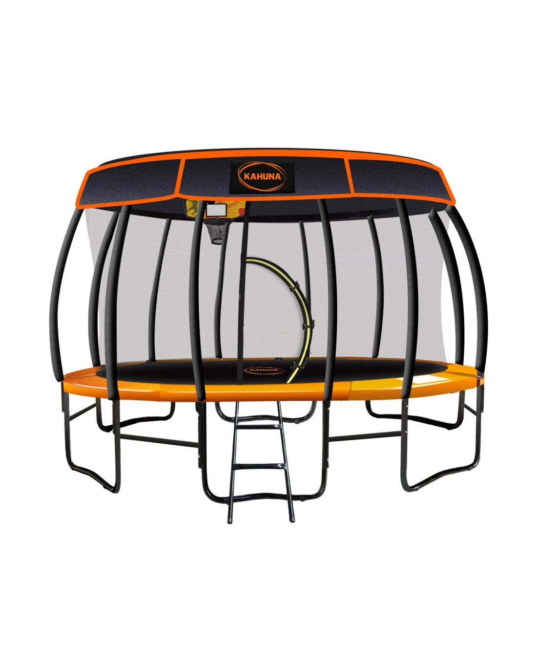 Kahuna Trampoline 14 ft with Basketball Set and Roof - Orange - Orange