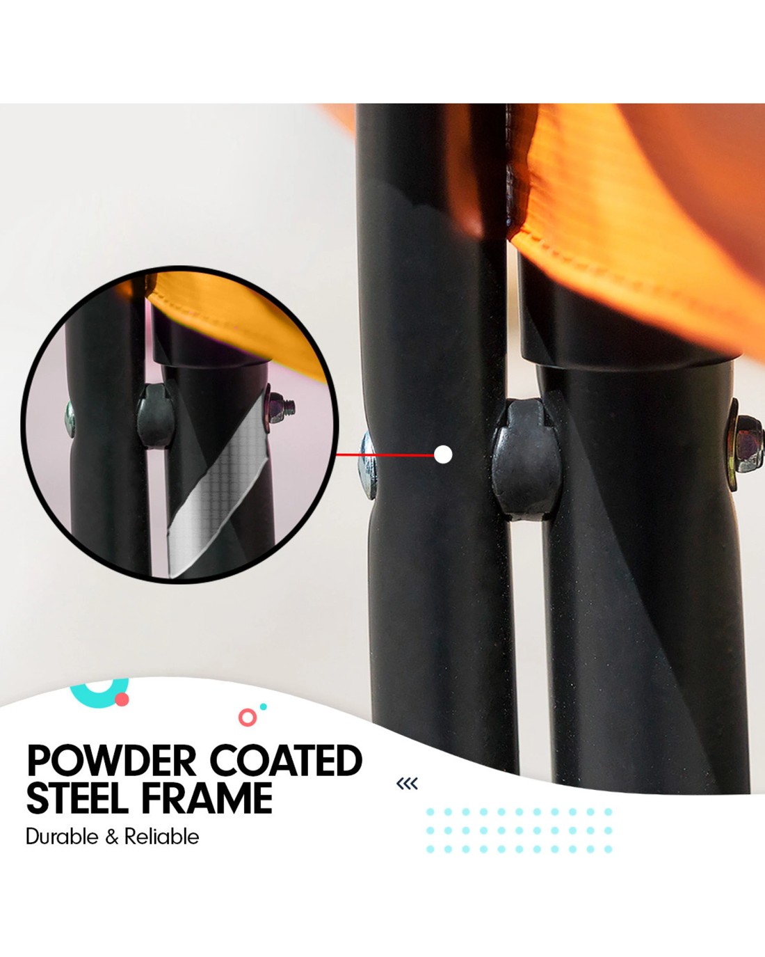 - Heavy duty black steel frame