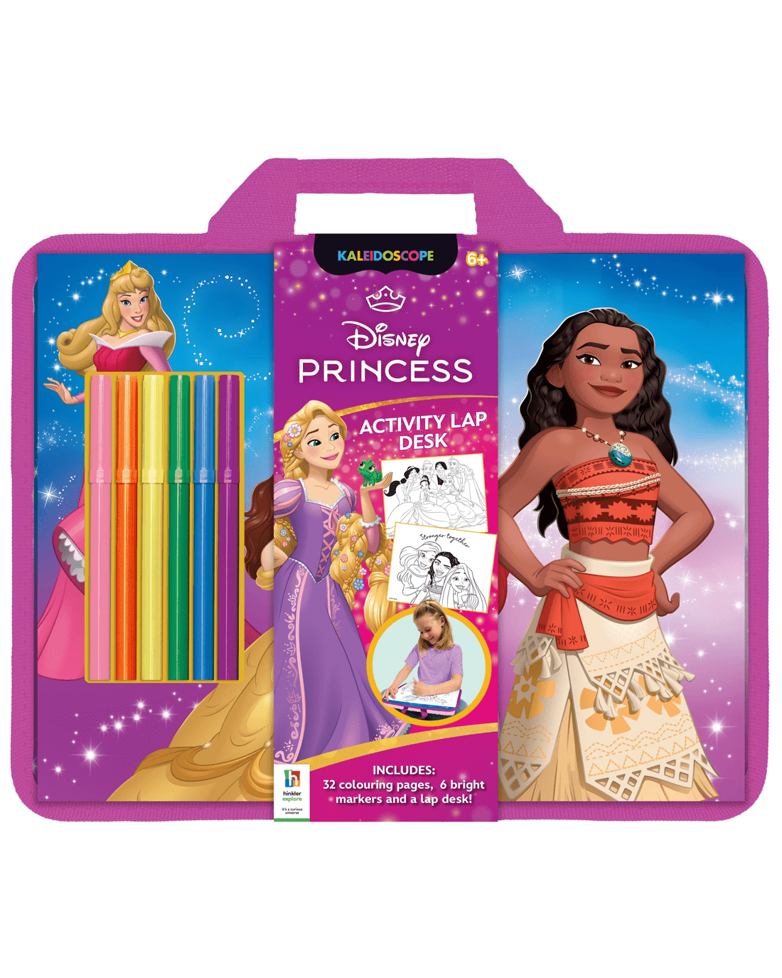 Hello princess! Enter a magical world with the Disney Princess Activity Lap Desk. Have a blast with your favourite Disney princesses in over thirty illustrations as you bring them to life with six bright markers. Dance into a royal world as you colour with your princess friends!