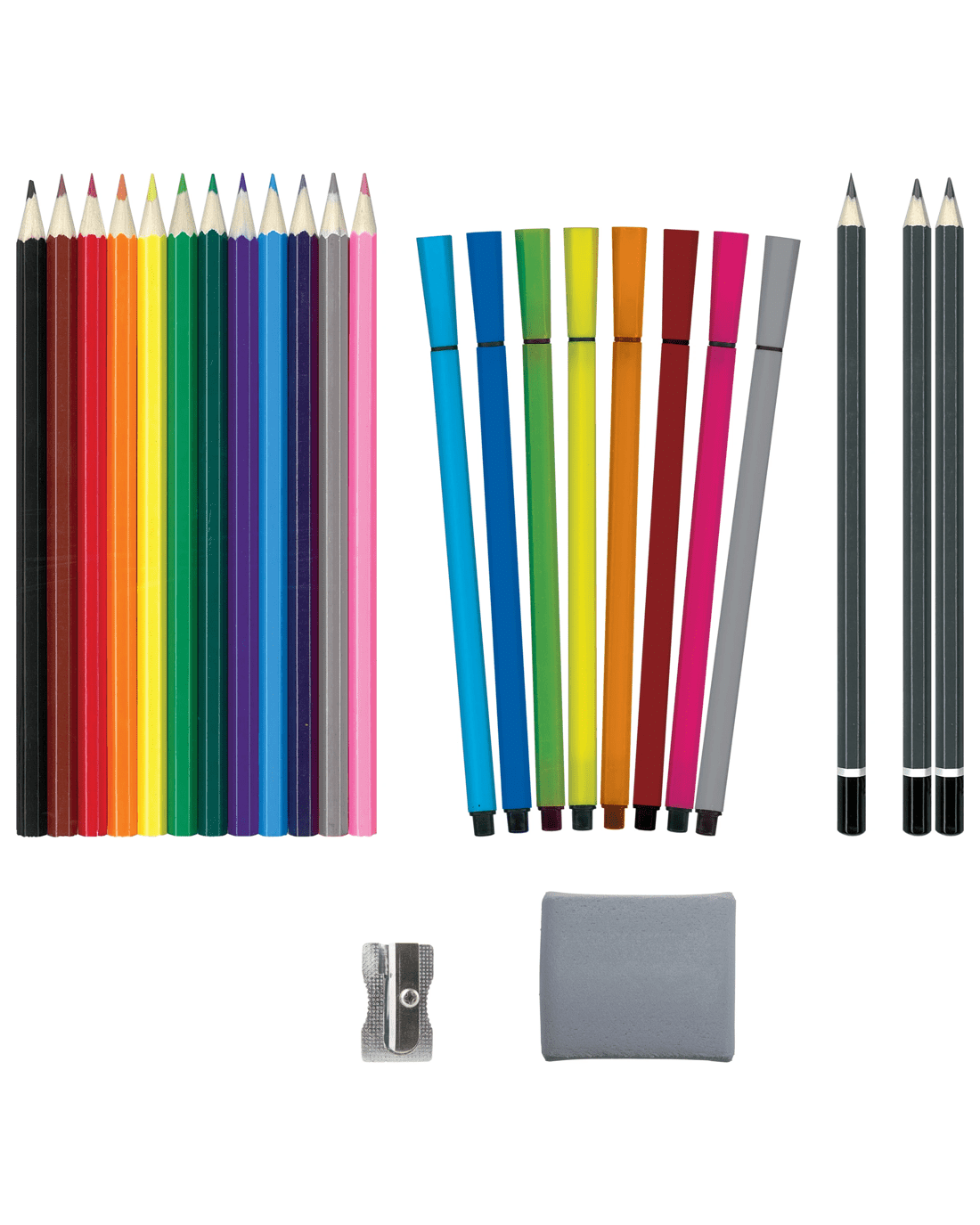 - Includes a putty eraser, a sharpener, 8 x markers, 32-page sketchbook, 5 x themed instruction books, 12 x colouring pencils and 3 x sketching pencils (2 HB and 2B pencil)