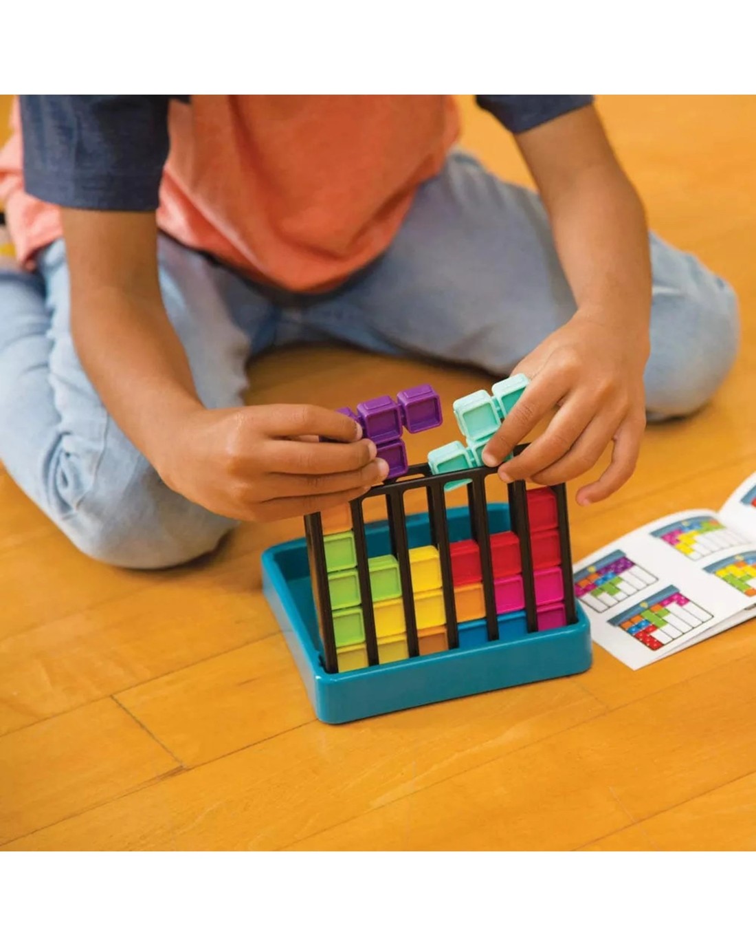 The brain-bending fun really stacks up with this vertical take on traditional Kanoodle! Perfect for solo play or a two-player challenge, players put their puzzle skills to the test to complete 40 gravity-defying puzzles or alternate placing pieces with a friend. Simply select a challenge from the guide, place the pieces as shown, then use the remaining pieces to complete the puzzle—or take turns placing the pieces. If a player's piece doesn't fit—they lose the round! Set includes Kanoodle Gravity puzzle board, 10 colorful puzzle pieces, guide with 40 puzzle challenges, and carrying case. Ages: 7+ | 1 Player