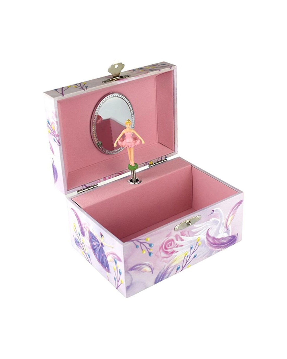 This enchanting jewellery box features a beautifully illustrated exterior with images of dancers and ballerinas, adding a whimsical touch to any shelf or table. When the winding handle on the back is turned, the ballerina figurine spins gracefully while the music plays, creating a captivating display. The box plays the tune For Elise, providing a magical musical experience for children.