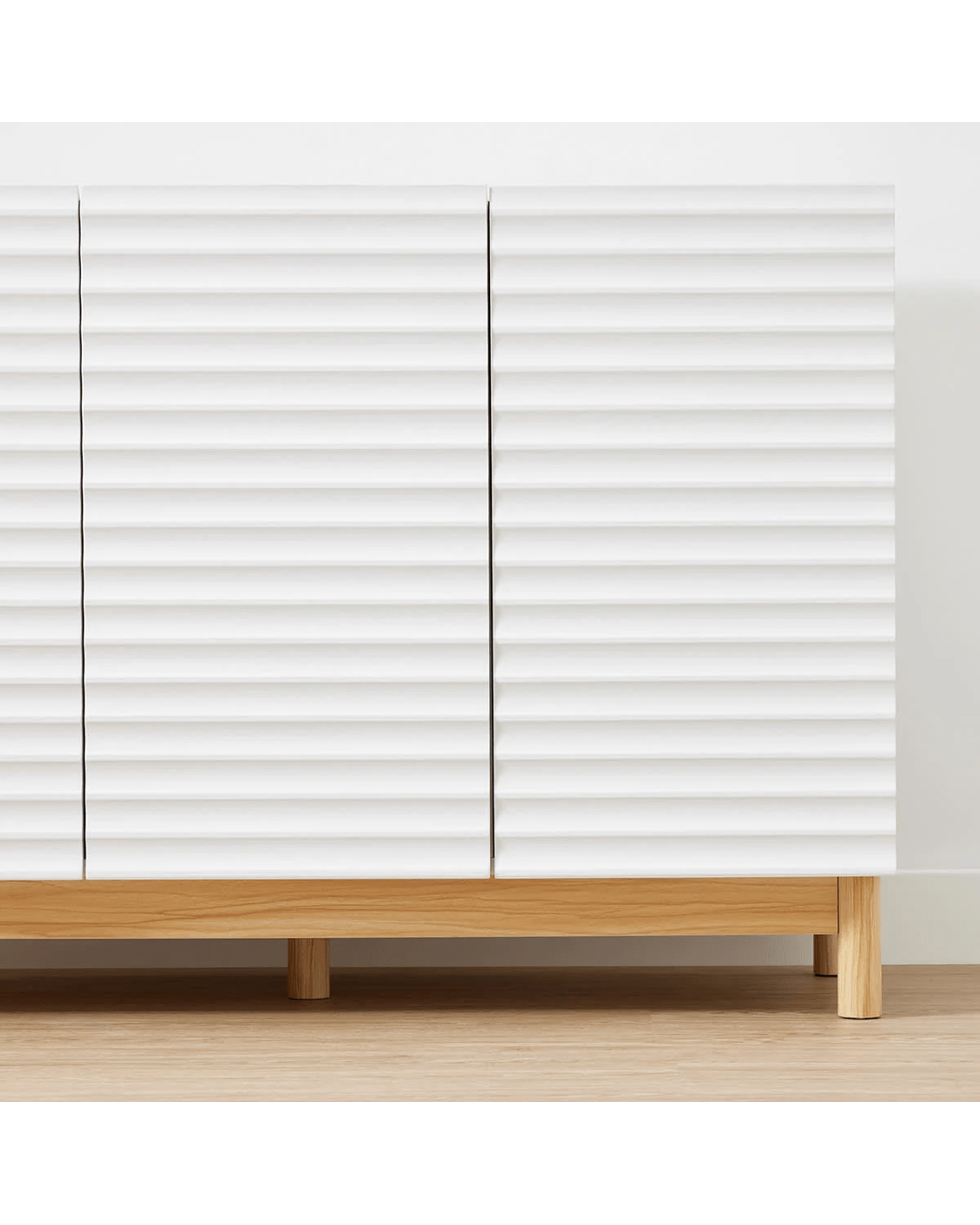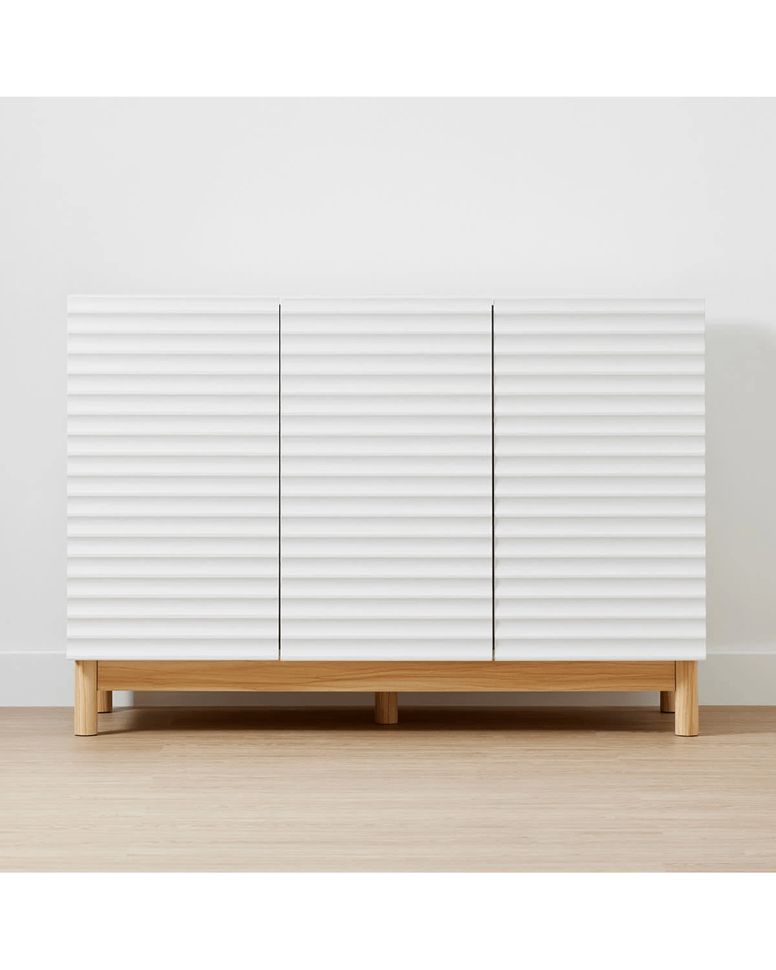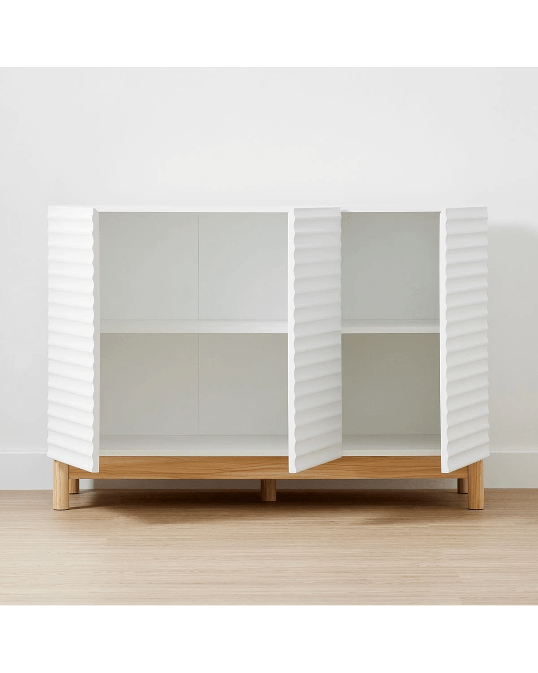 The Karla Sideboard with Adjustable Shelves will make a great storage option for your home. Its elegant design and white shade are sure to enhance your existing decor.